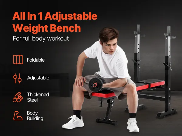 Multifunctionele trainingsbank: deze alles-in-één halterbank bevat een squatrek voor oefeningen van het onderlichaam, twee optrekhandgrepen voor armtraining en een vlakke bank voor buik- en beentraining. Het beschikt ook over een 2 inch (ca. 51 mm) dik zitkussen en met schuim bedekte handgrepen voor extra comfort tijdens uw oefeningen.
