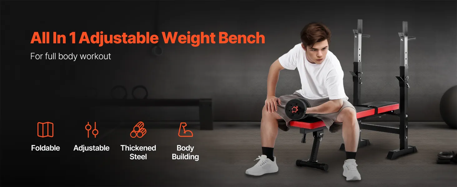VEVOR Gewichtbankset Trainingsbank voor bankdrukken, snel opvouwbaar en snel verstelbaar, 181 kg draagvermogen, sit-upbank voor krachttraining in de sportschool, halterset zwart