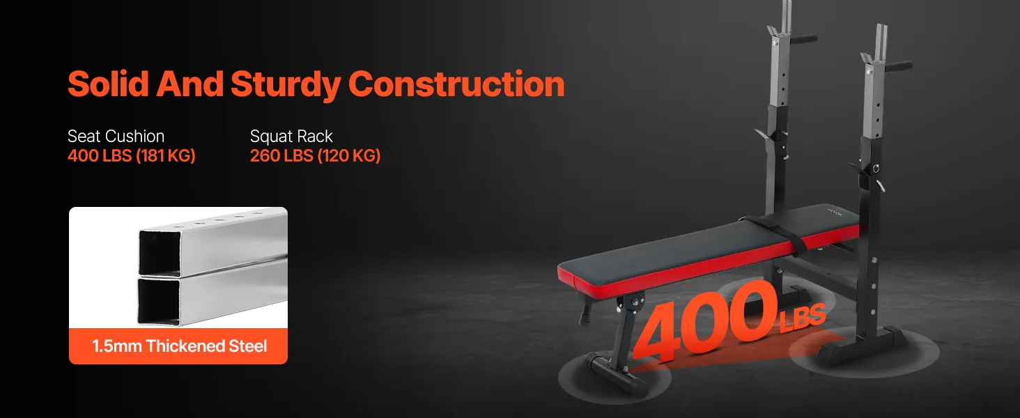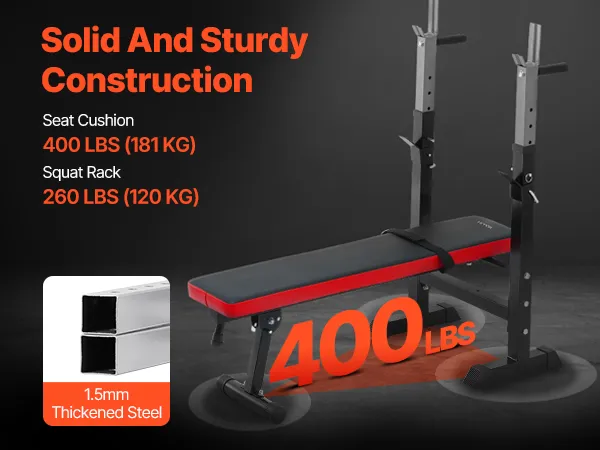 Stevig en duurzaam: deze halterbank is gemaakt van robuust staal van commerciële kwaliteit en is ontworpen om lang mee te gaan. Het kan gemakkelijk gebruikers ondersteunen met een gewicht tot 180 kg. De antislip rubberen voetjes voorkomen beschadigingen aan de vloer en zorgen ervoor dat de bank stabiel blijft tijdens gebruik.