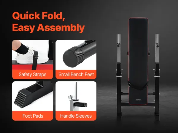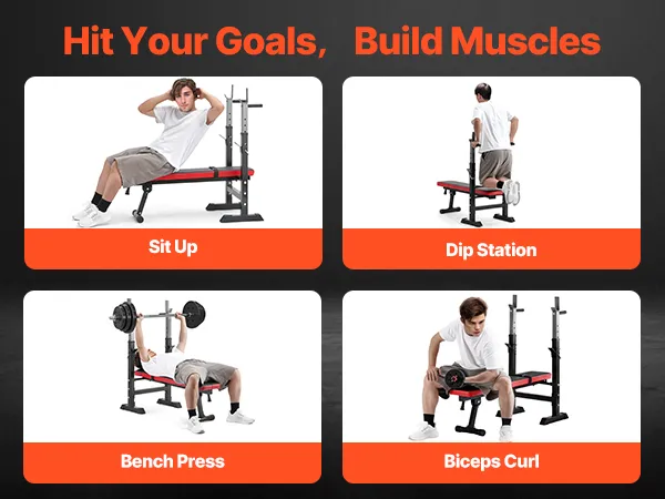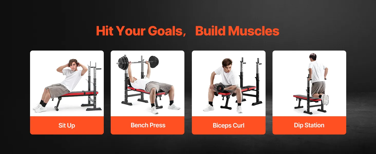 Opvouwbaar en verstelbaar ontwerp: het opvouwbare ontwerp van de sit-up trainingsbank maakt het gemakkelijk op te bergen en vermindert de opslagruimte met 90%. De hoogte van het squatrek en andere modules kan worden aangepast aan jouw trainingsbehoeften, waardoor ze extreem veelzijdig en gebruiksvriendelijk zijn.