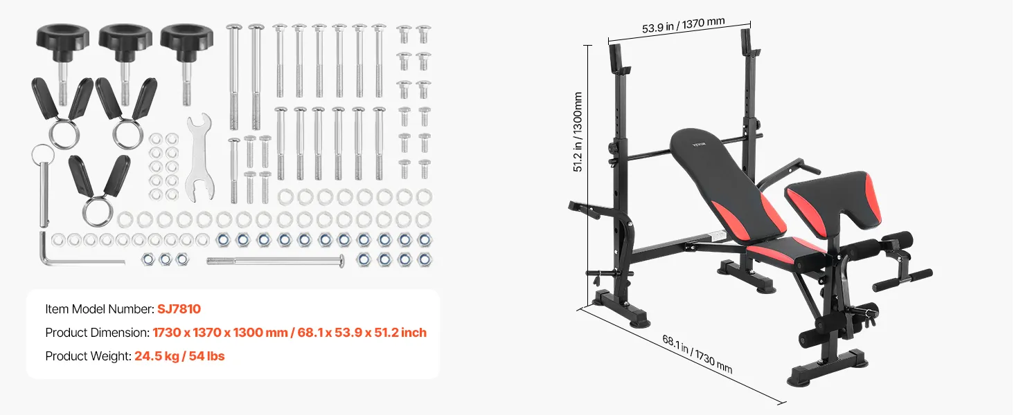 Eenvoudig te monteren: Alle benodigde kleine onderdelen zijn verpakt in een blisterverpakking om verlies te voorkomen. De meegeleverde instructies zijn eenvoudig en duidelijk en bevatten alle benodigde montageonderdelen, zodat je de universele halterbank snel kunt opbouwen en beginnen met trainen. (Opmerking: halters zijn niet inbegrepen.)