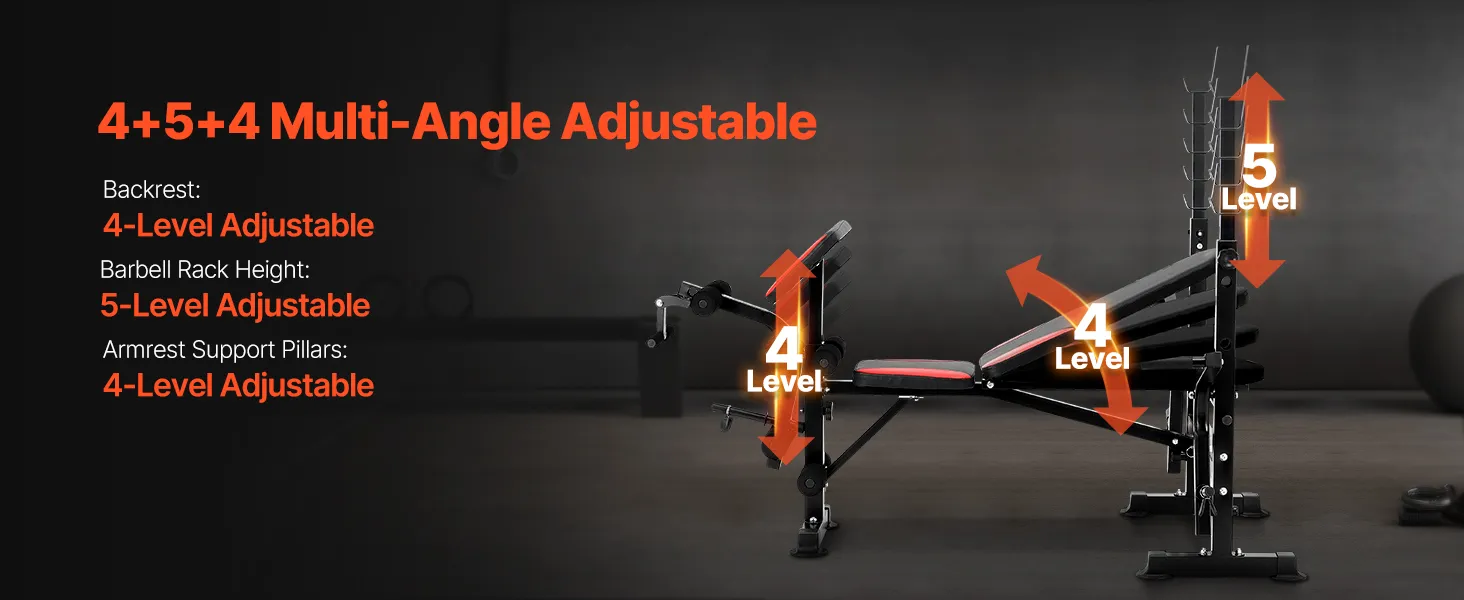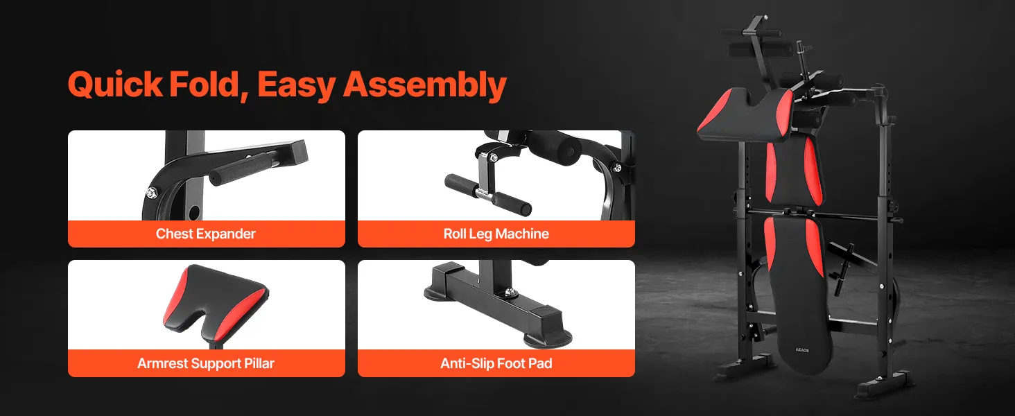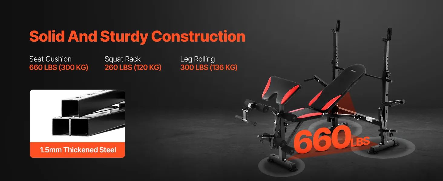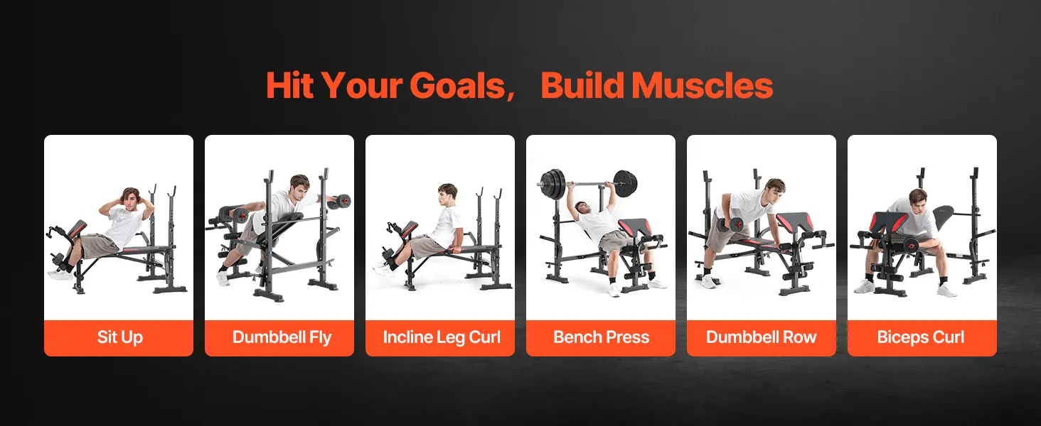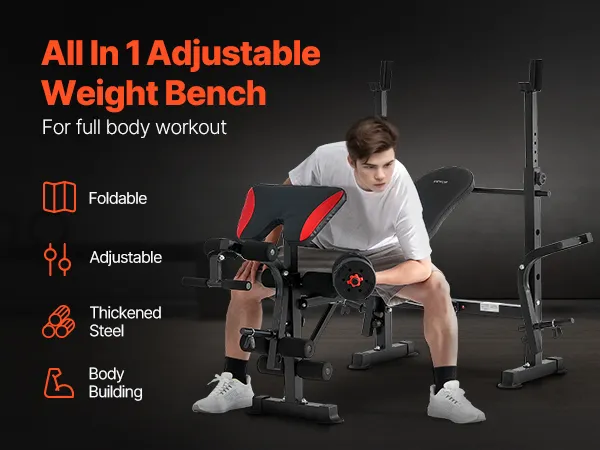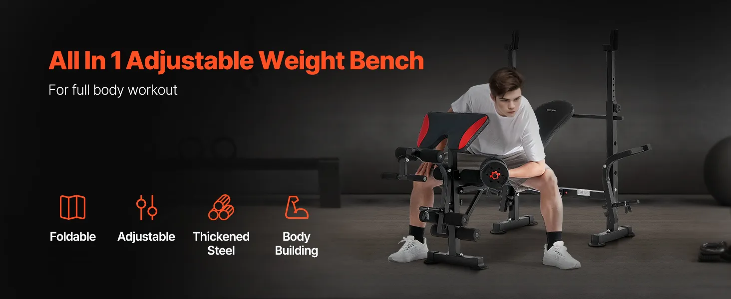 VEVOR Gewichtsbankset Verstelbare Trainingsbank voor Bankdrukken met Snel Opvouwen en Snelle Verstelling 299 kg Laadvermogen, Sit-up Bank voor Krachttraining in de Thuisgym