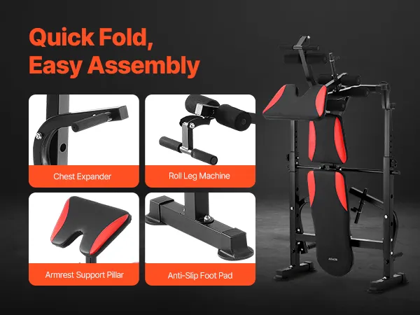 Deze praktische oefenbank heeft een opvouwbaar ontwerp dat gemakkelijk kan worden bevestigd met de onderste bouten. In opgevouwen toestand bespaart hij 90% ruimte en is daarom ideaal voor kleine ruimtes.