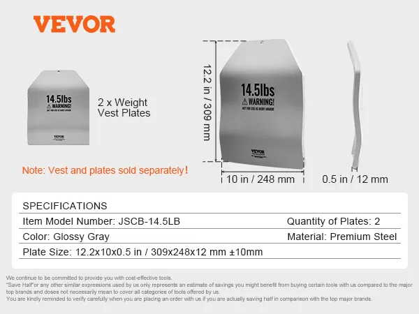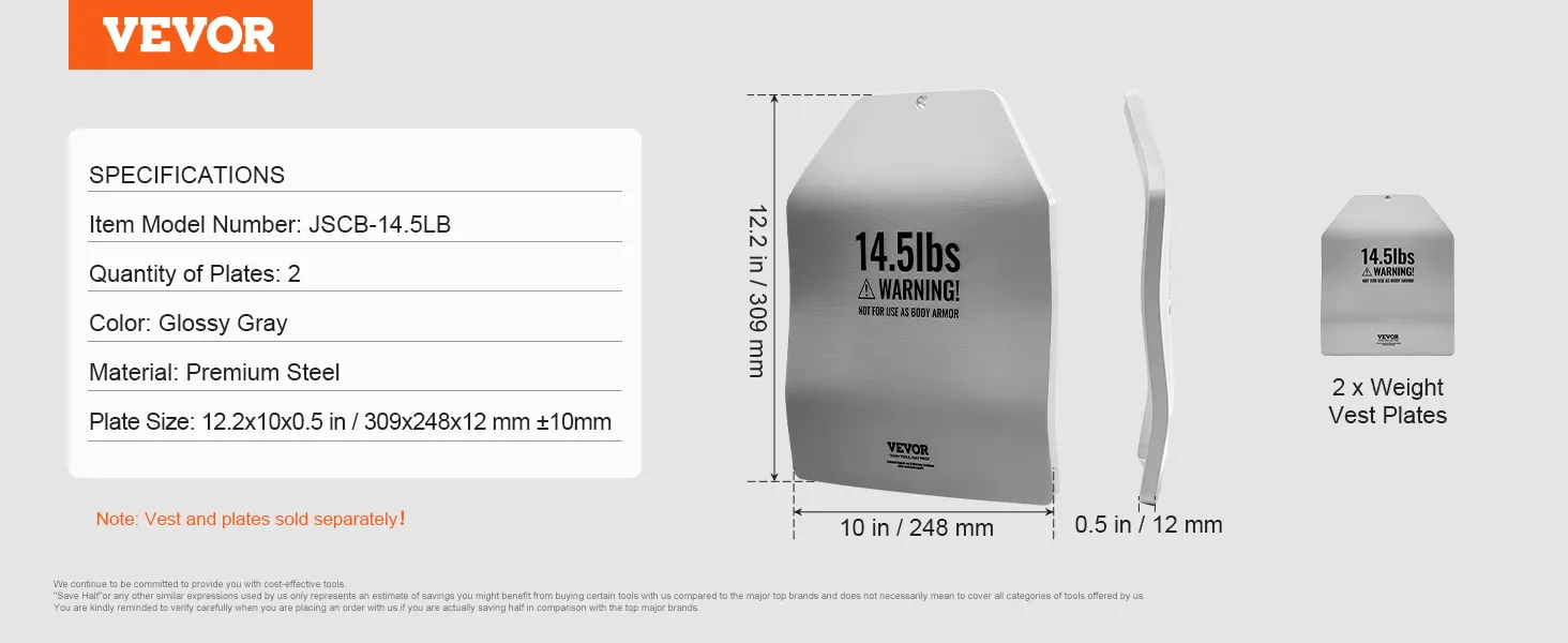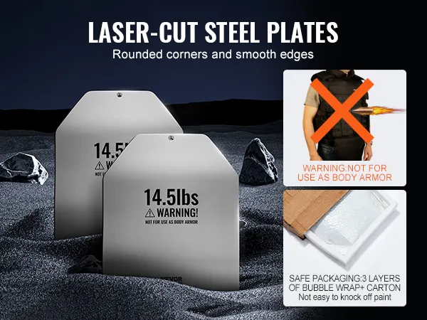 Heavy-Duty Steel: Crafted from durable steel with rounded corners and smooth edges, these weighted plates for vest are built to last. Each plate is carefully packaged with three layers of bubble wrap and a carton for added protection. WARNING: NOT FOR USE AS BODY ARMOR!