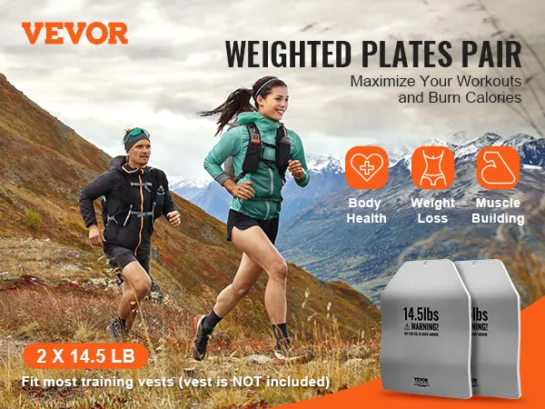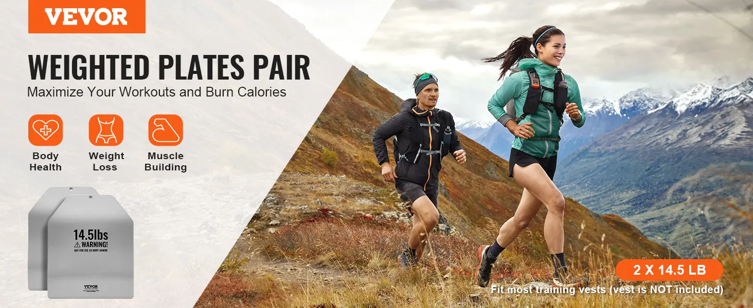 Customizable Training: Adapt your workout regimen with weight plates available in pairs of 8.75 lbs and 14.5 lbs. Perfect for running, strength training, aerobics, hiking, pull-ups, and push-ups.