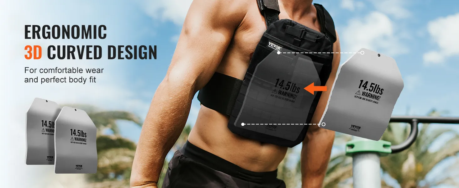 Enjoy a snug, comfortable fit with our weight vest plates featuring an ergonomic 3D curved design. This contouring shape ensures a secure and comfortable workout.