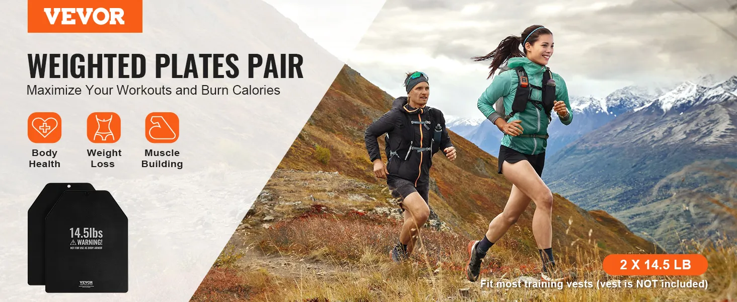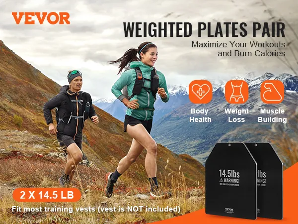 VEVOR Gewichtsvestplaten 6,58 kg x 2 stuks. Premium stalen gewichtsschijven, ergonomisch gevormd - WOD's, extra gewicht voor gewichtsvesten voor krachttraining, hardlopen en fitness.