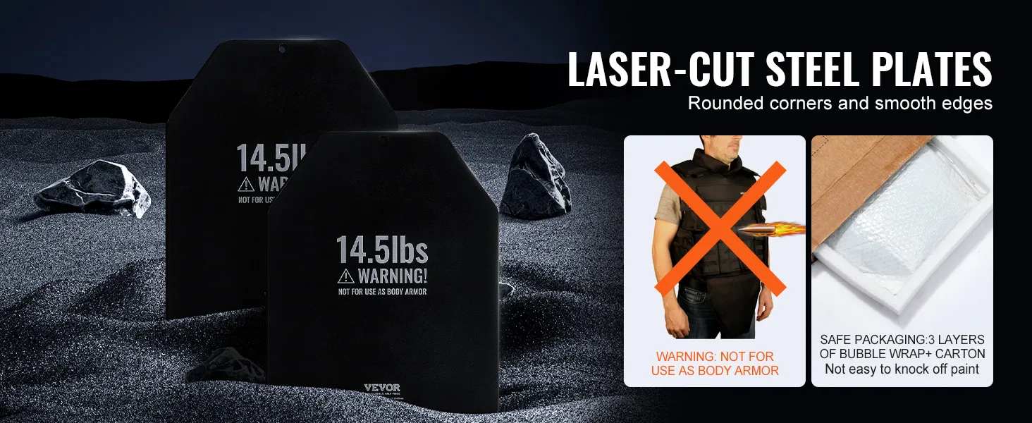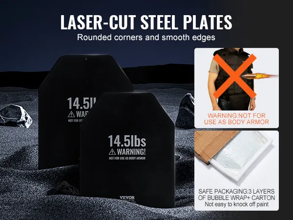 Heavy Duty Steel: Deze vestgewichtplaten zijn gemaakt van robuust staal met afgeronde hoeken en gladde randen en zijn ontworpen om lang mee te gaan. Elk paneel wordt zorgvuldig verpakt in drie lagen noppenfolie en een kartonnen doos voor extra bescherming. WAARSCHUWING: NIET GEBRUIKEN ALS LICHAAMSBESCHERMING!