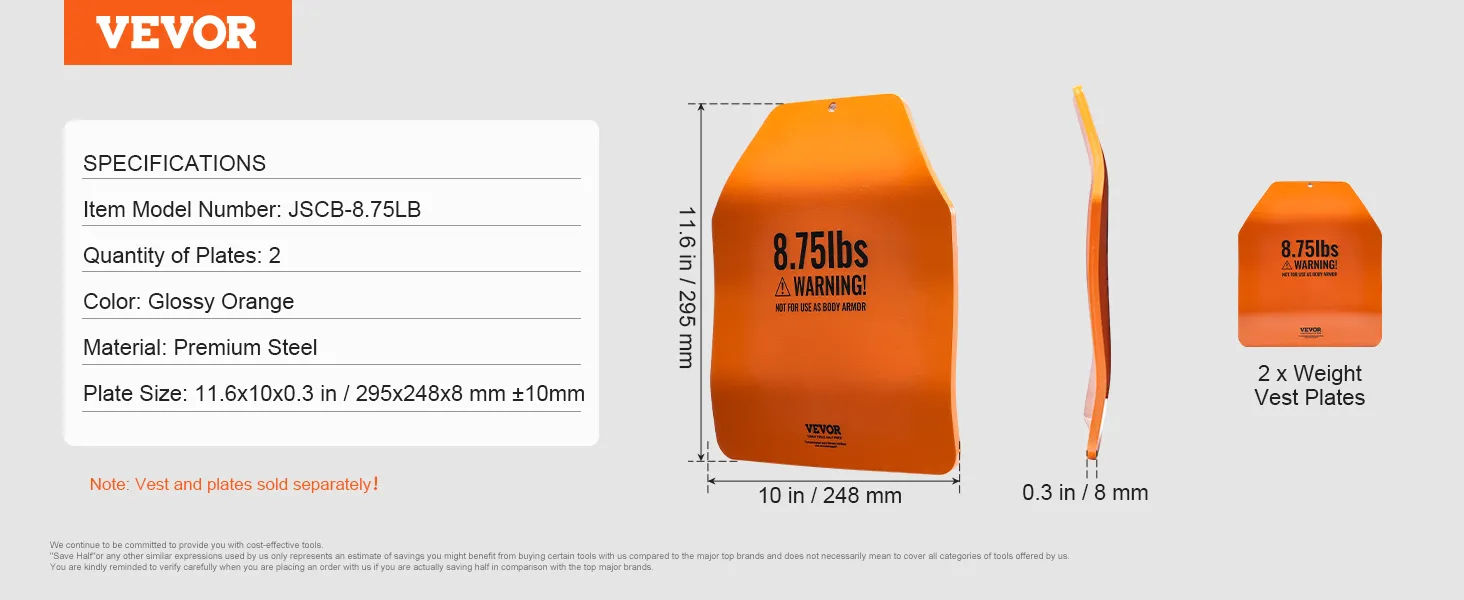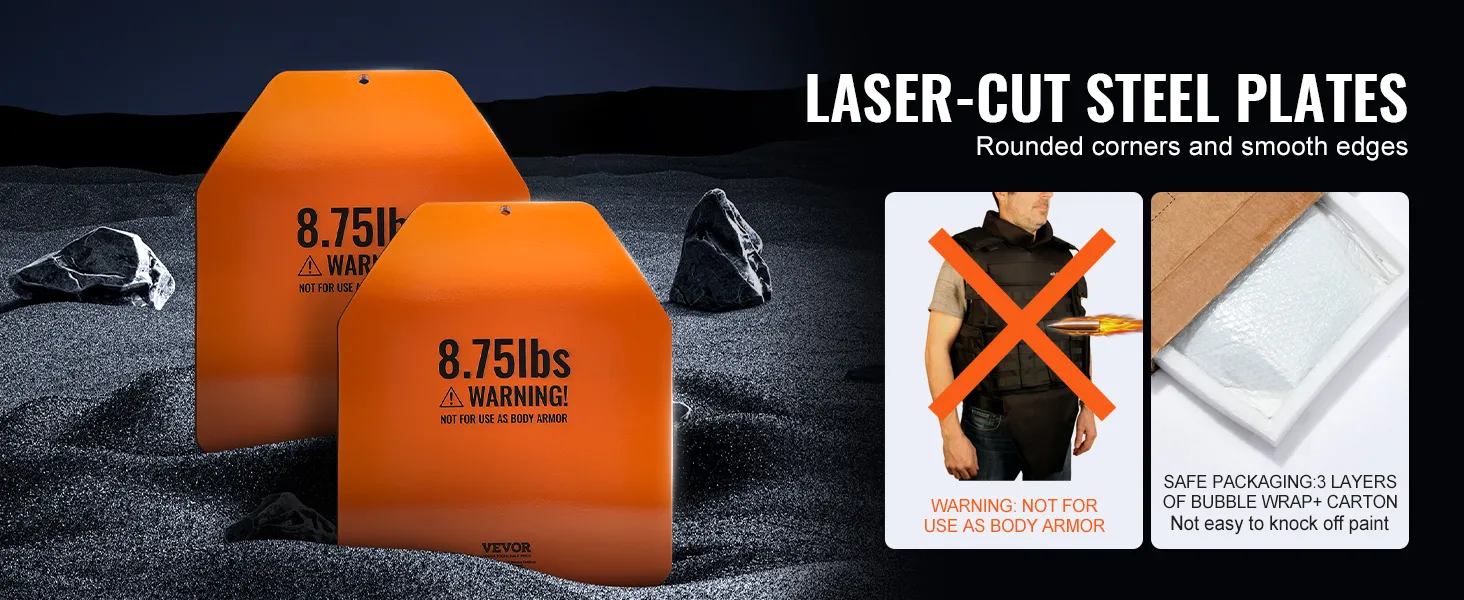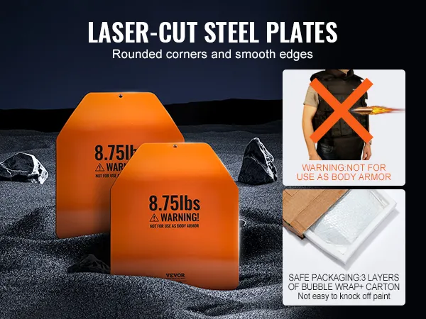 Heavy Duty Steel: Deze vestgewichtplaten zijn gemaakt van robuust staal met afgeronde hoeken en gladde randen en zijn ontworpen om lang mee te gaan. Elk paneel wordt zorgvuldig verpakt in drie lagen noppenfolie en een kartonnen doos voor extra bescherming. WAARSCHUWING: NIET GEBRUIKEN ALS LICHAAMSBESCHERMING!