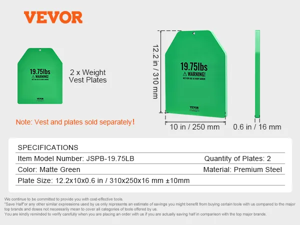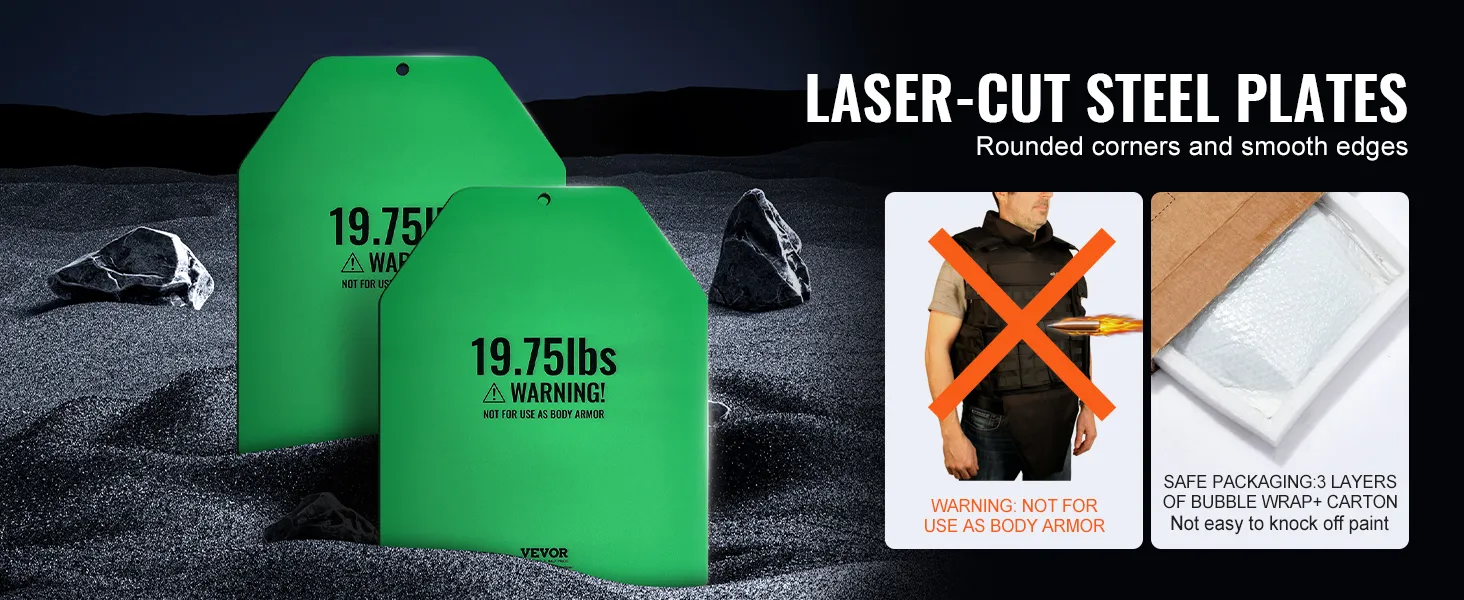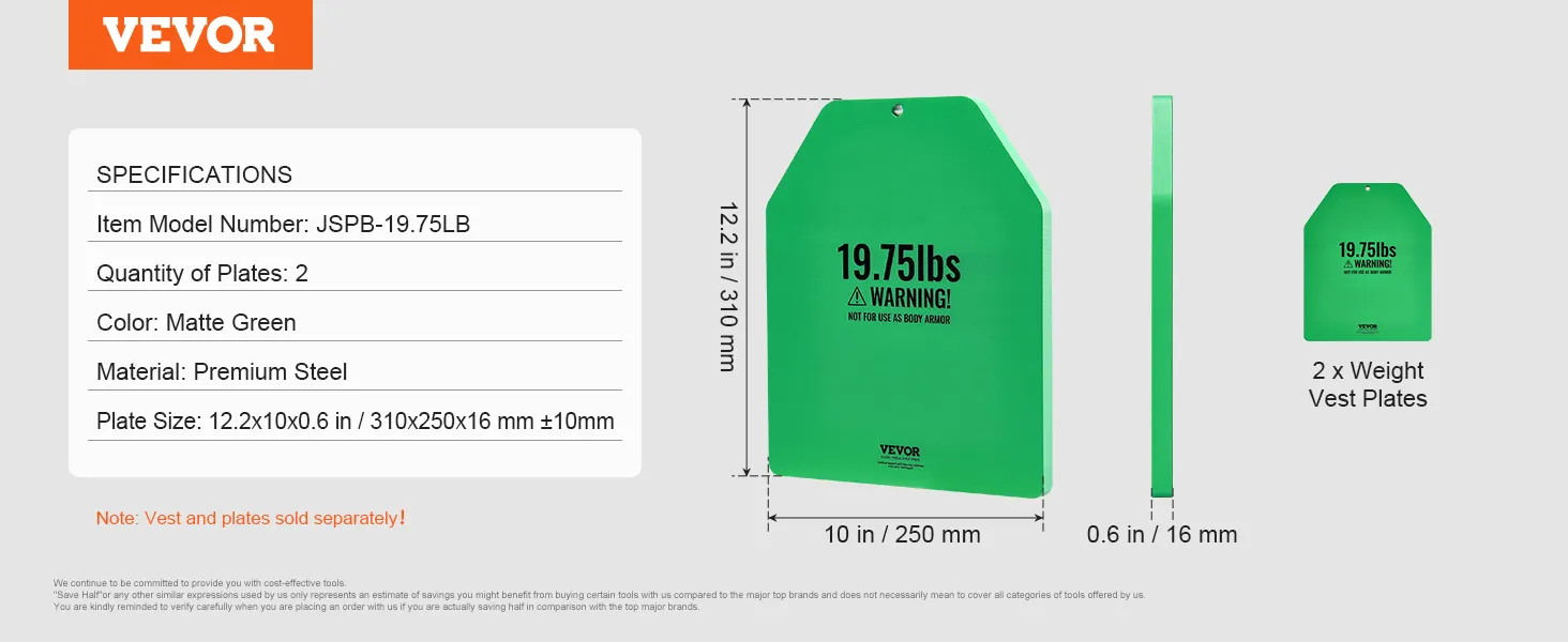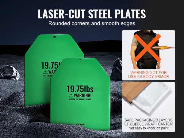 Heavy Duty Steel: Deze vestgewichtplaten zijn gemaakt van robuust staal met afgeronde hoeken en gladde randen en zijn ontworpen om lang mee te gaan. Elk paneel wordt zorgvuldig verpakt in drie lagen noppenfolie en een kartonnen doos voor extra bescherming. WAARSCHUWING: NIET GEBRUIKEN ALS LICHAAMSBESCHERMING!