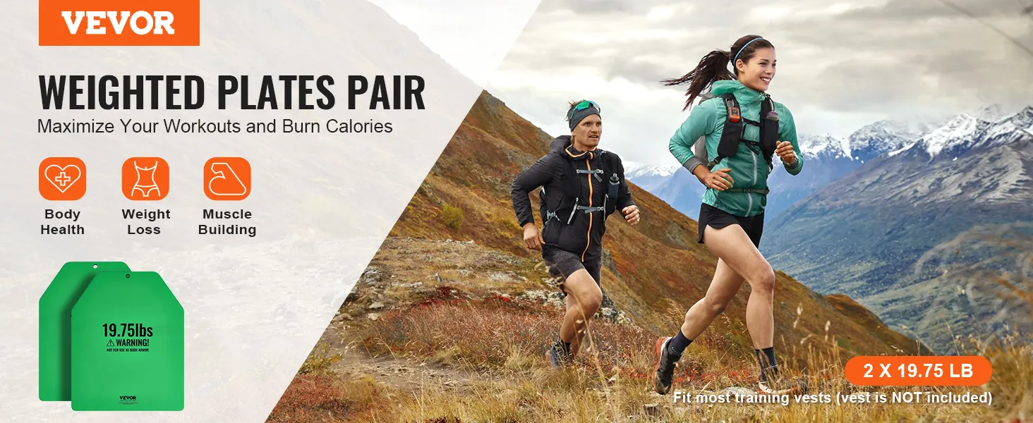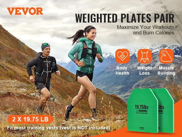 Twee halterschijven van 8,9 kg: deze set bevat twee gewichtsvestplaten van 19,75 kg, ontworpen om uw training te verbeteren. Let op: Het vest wordt apart verkocht.