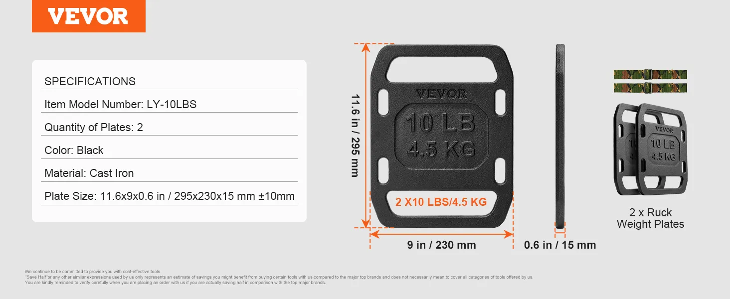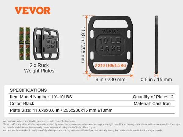 Solid & Compact: Enhance your workouts with our 2 x 10 lbs (4.5 kg) ruck plates, designed for both strength and efficiency. Its compact size fits easily into your training routine.