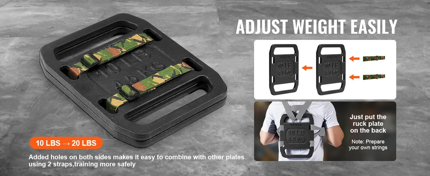 Adjustable Weight Options: Adapt your training with ease from 10 lbs to 20 lbs. The side holes allow you to combine with other weight plates using straps for safe and flexible weight adjustments.