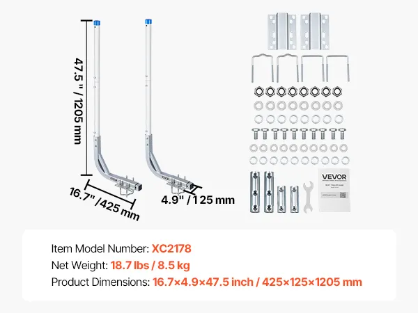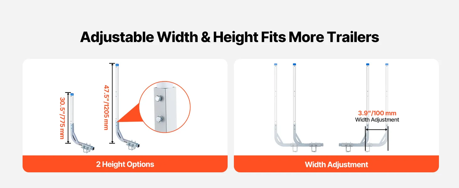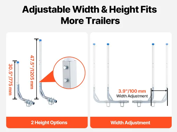 VEVOR boottrailergeleider 775 mm / 1205 mm, 0-10 cm verstelbare breedte, trailergeleider gemaakt van hoogwaardig staal met PVC-buizen, geschikt voor speedboten, compacte visboten en kleine zeilboten.