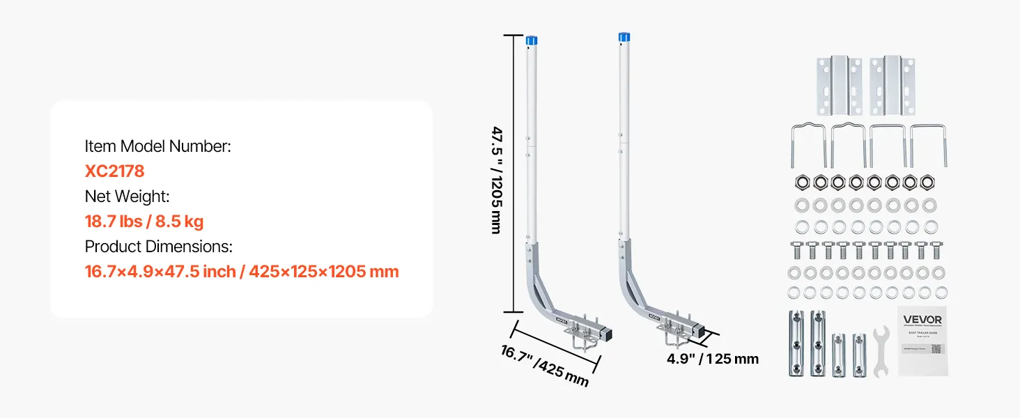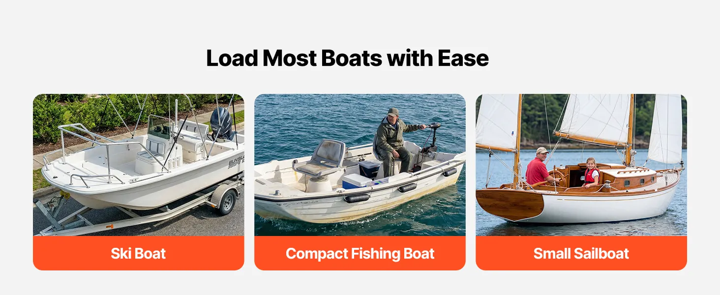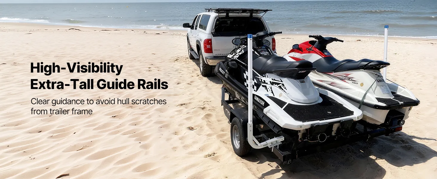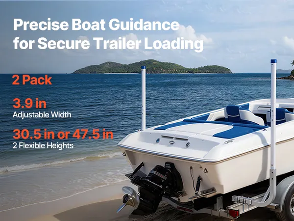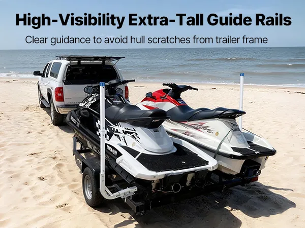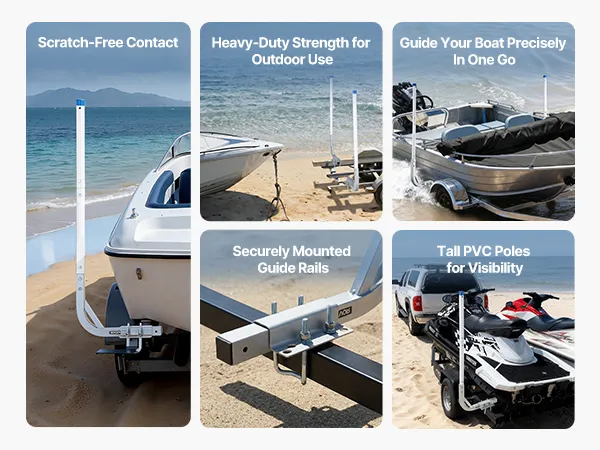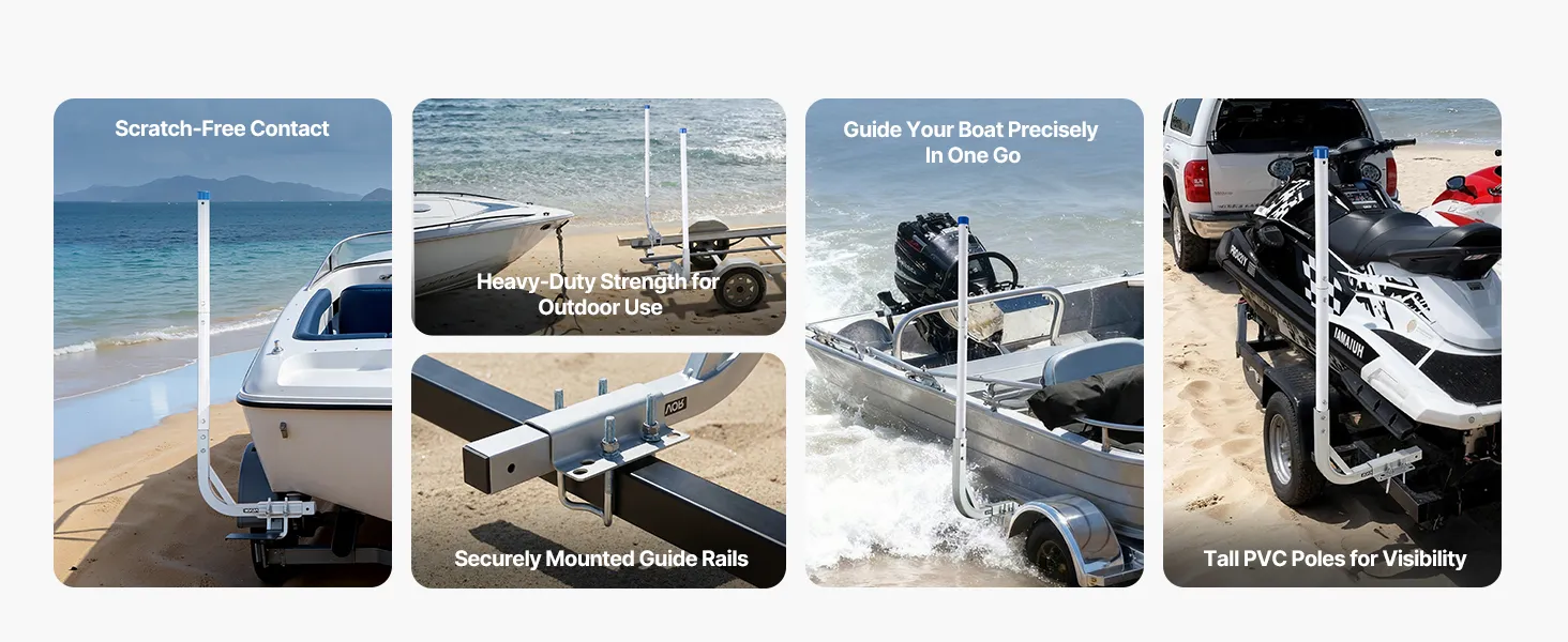 Hoge PVC-geleiders voor boottrailers: Extra hoge PVC-geleiders voor boottrailers verbeteren het zicht en maken het gemakkelijker om de boot uit te lijnen tijdens het laden. Chauffeurs kunnen de status van de trailer ook in realtime volgen. De gladde, afgeronde PVC-stangen beschermen de romp van uw boot tegen krassen en beschadigingen.