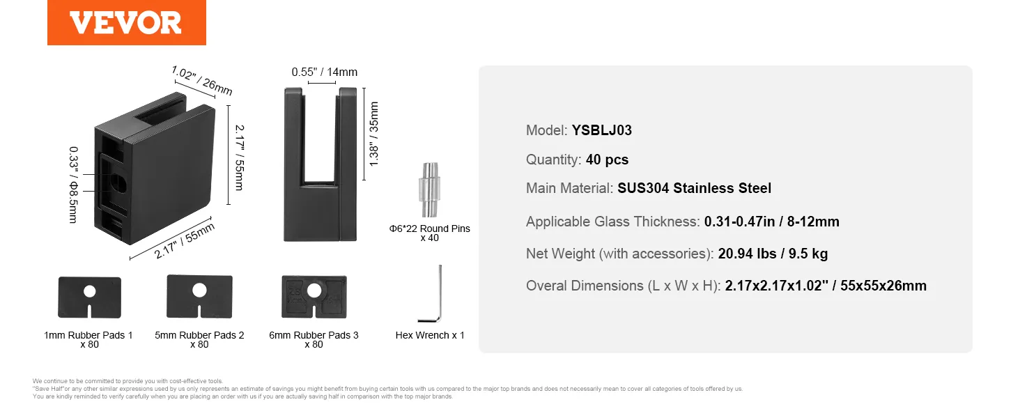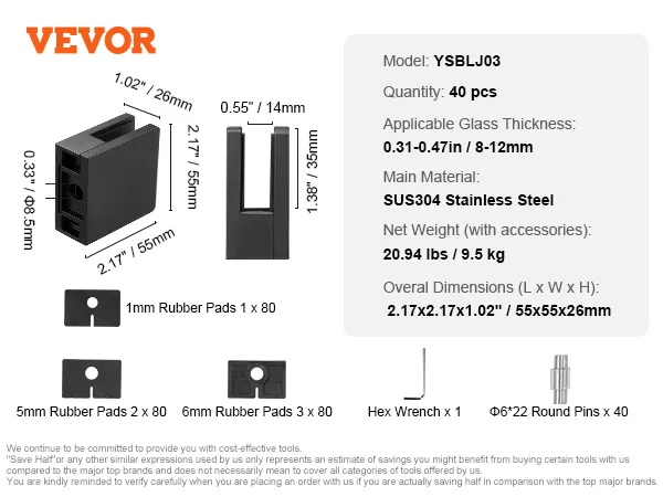 De VEVOR glazen balustradebeugel is eenvoudig te installeren. Hij wordt geleverd met een inbussleutel voor snelle installatie. U kunt de bouten eenvoudig losdraaien, het glas plaatsen en weer vastdraaien. Dit gebruiksvriendelijke ontwerp bespaart u tijd en moeite. De meegeleverde gereedschappen maken het installatieproces soepel. U hebt geen extra apparatuur nodig. Dit gemak laat u zich concentreren op andere taken. Of u nu een professional of een doe-het-zelver bent, u kunt hem eenvoudig installeren.