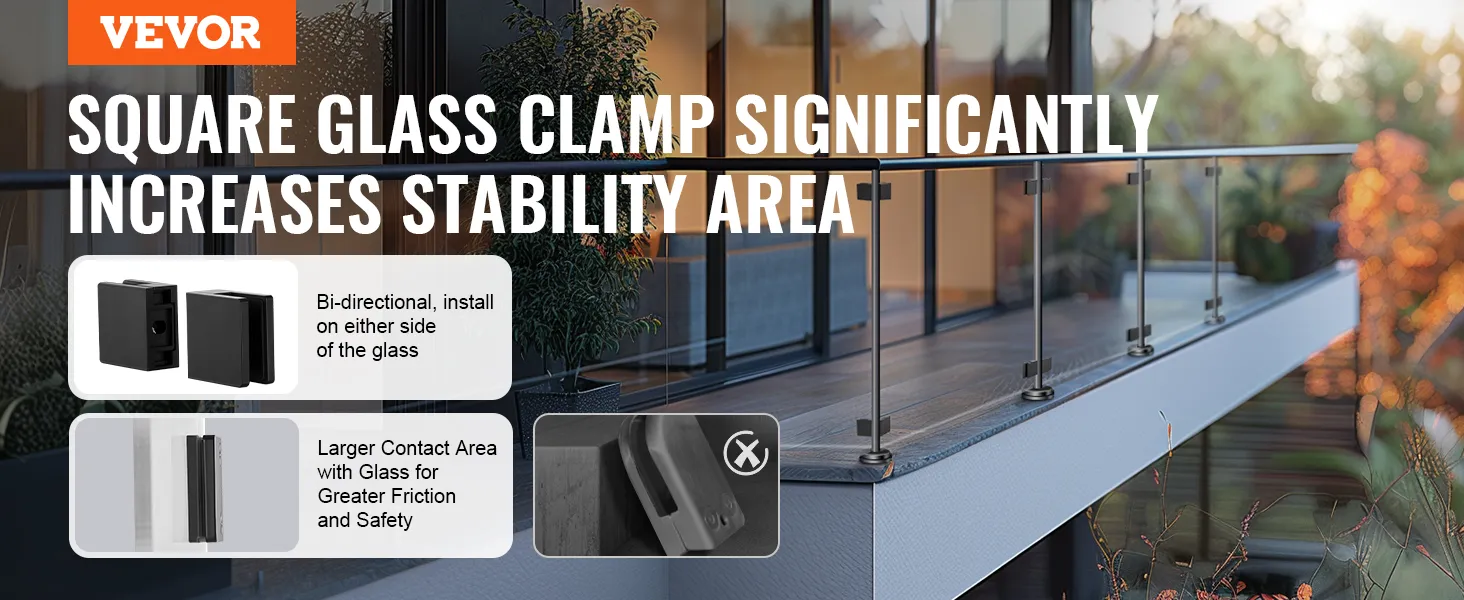 De VEVOR glazen balustradebeugel heeft een bidirectioneel ontwerp. U kunt hem aan elke kant van het glas installeren. Deze flexibiliteit maakt hem geschikt voor verschillende toepassingen. Het maakt niet uit of u hem nodig hebt voor een balkon, tuin, terras of trap. Het bidirectionele ontwerp maakt creatieve installaties mogelijk. U hoeft niet voor één type installatie te kiezen. Uw opties zijn flexibel en veelzijdig. Daarom kunt u de balkonglasklembeugel uitlijnen op basis van uw ontwerpvoorkeuren. Deze functie verbetert de esthetische aantrekkingskracht van uw projecten. De veelzijdigheid betekent dat deze toolkit een betrouwbare oplossing biedt voor verschillende behoeften aan glazen balustrades.