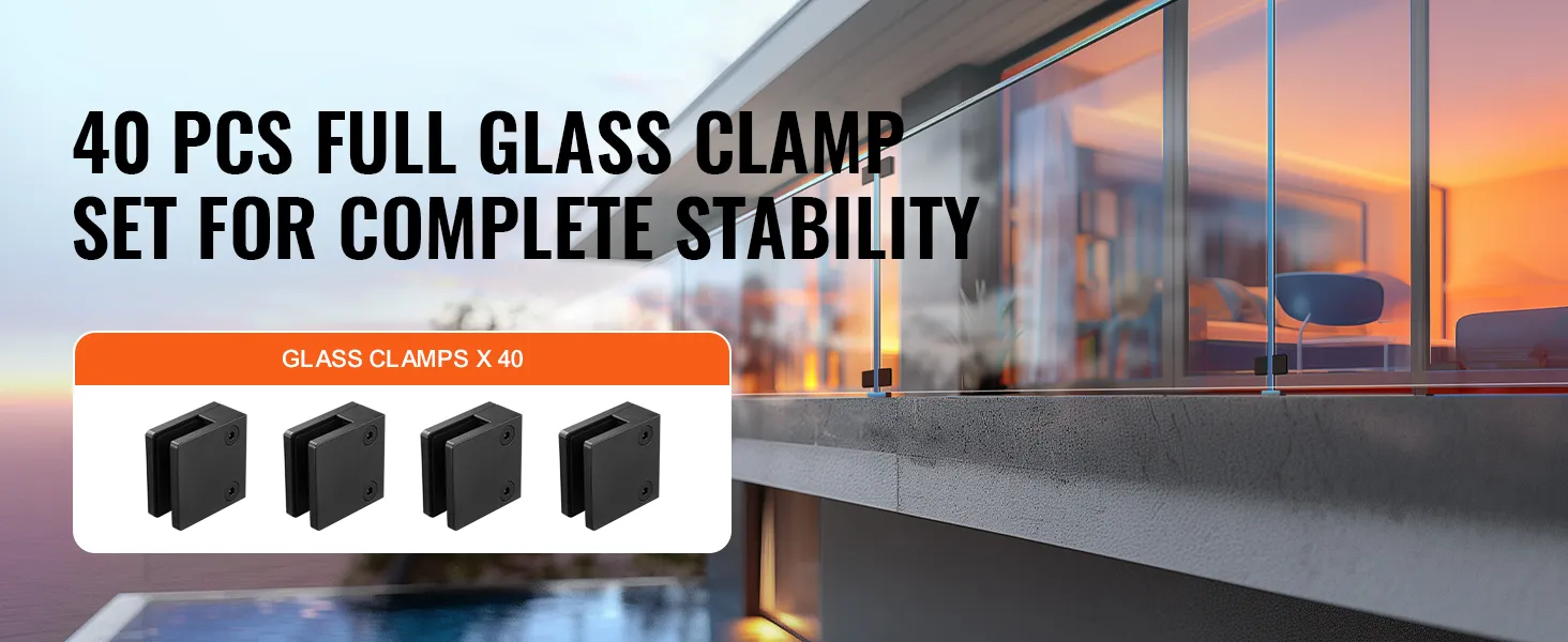 VEVOR Glasklem, 40 stuks vierkante glazen balustradebeugels voor gehard glas van 0,31"-0,47", glasmontageklem van roestvrij staal 304, glazen plankbeugel voor balkon, tuin, terras, trap, zwart