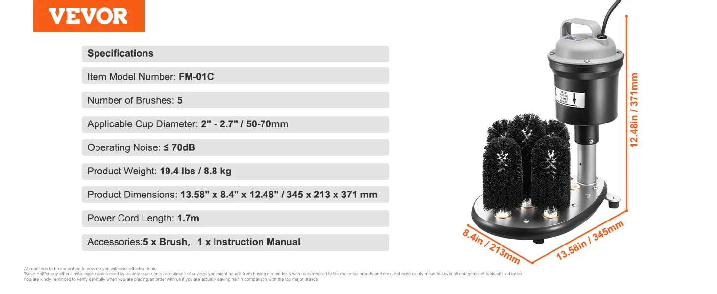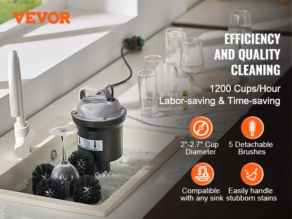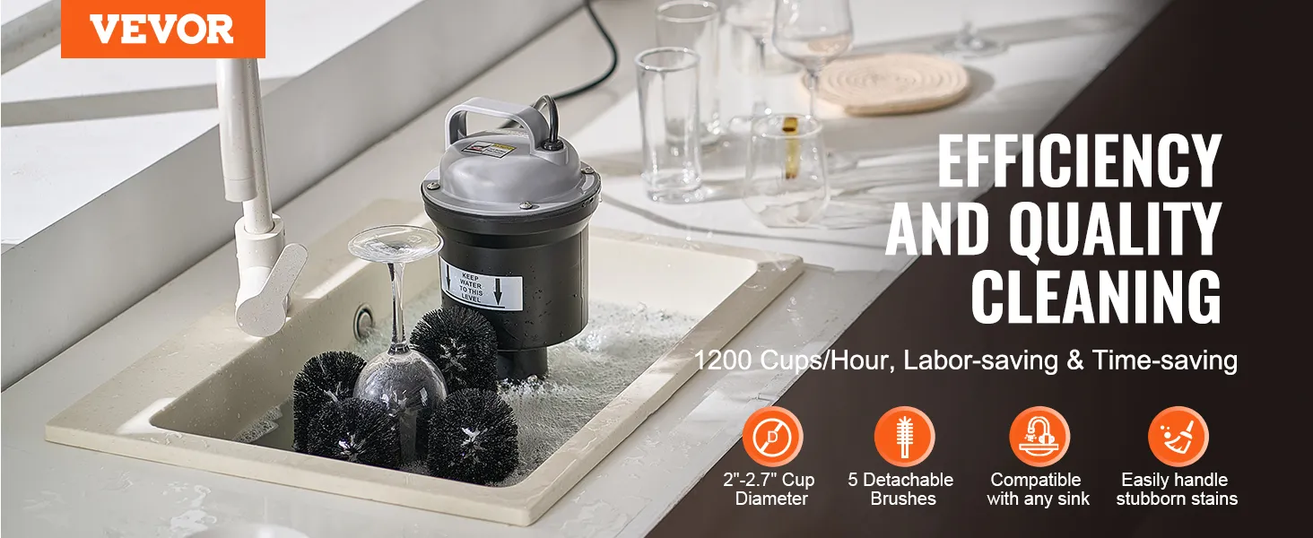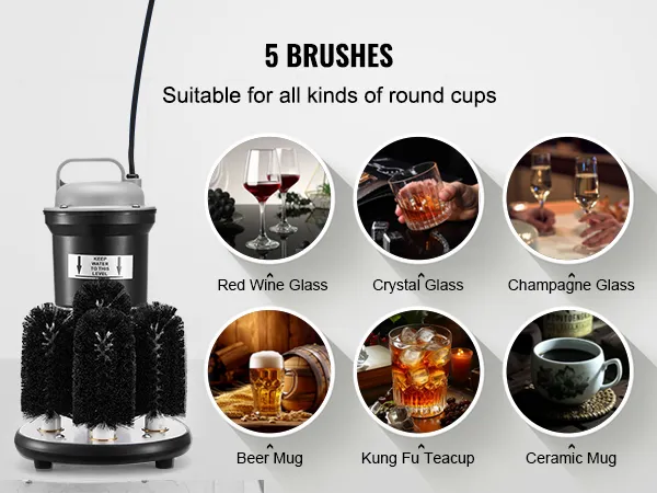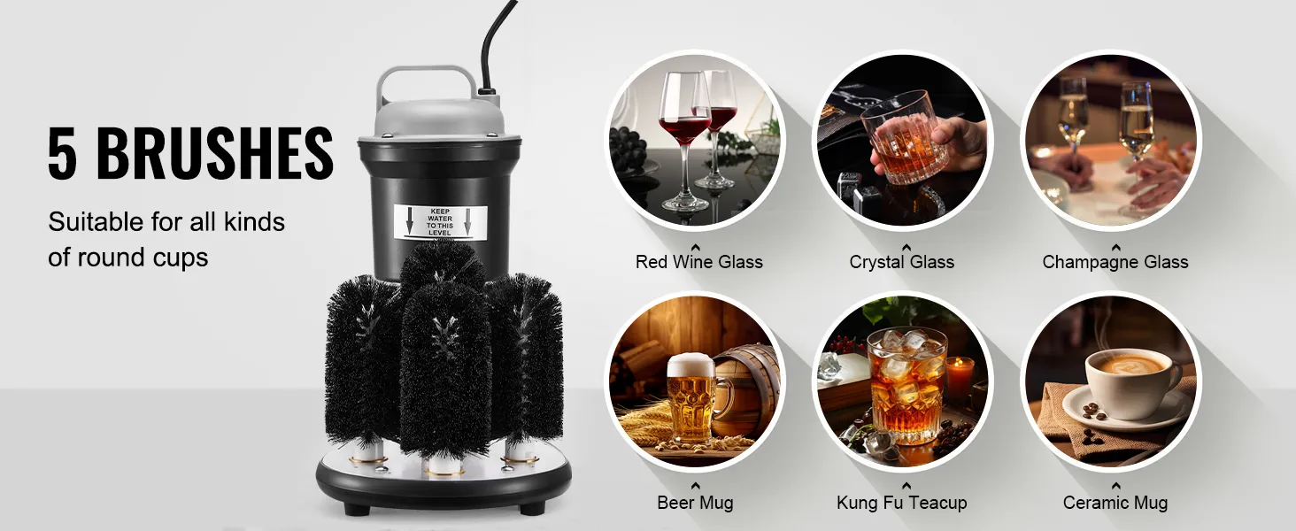 This washer features 5 brushes, allowing it to adapt flexibly to various round-mouth glass types. It is widely suitable for champagne glass, beer glass, glass, and mags. Perfect for both family gatherings and commercial settings, it meets all your cleaning needs.