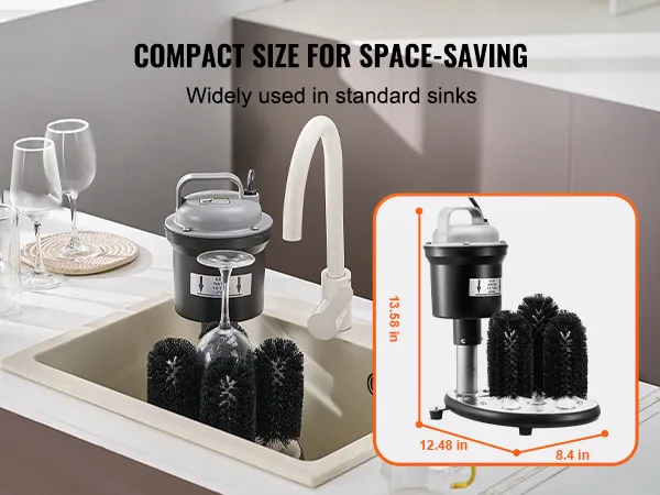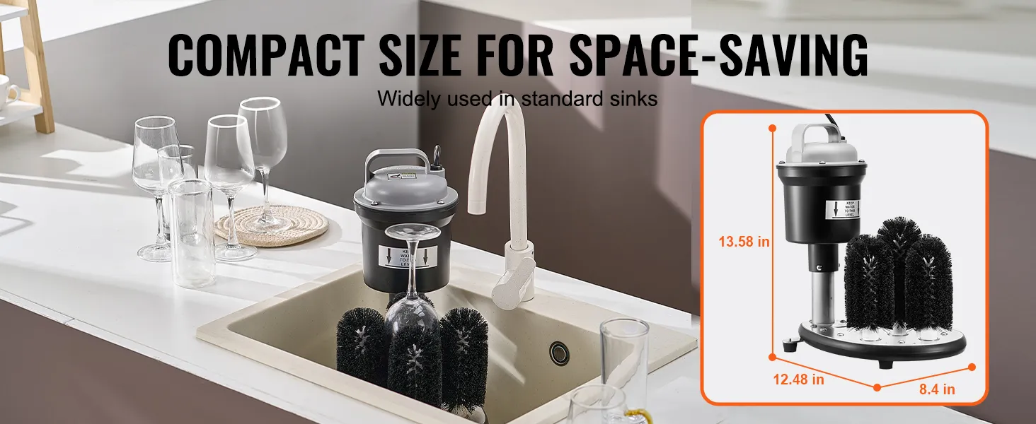 Compatible with Various Glass Types: With its flexible design, this glass washer accommodates a wide range of glass types, including wine glasses, crystal glasses, champagne flutes, beer mugs, tea cups, and ceramic mugs, as long as the glass opening is between 2"-2.7". Its adaptable design ensures compatibility with your diverse cleaning needs.