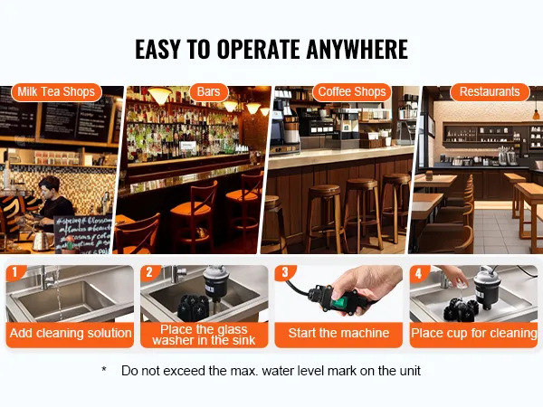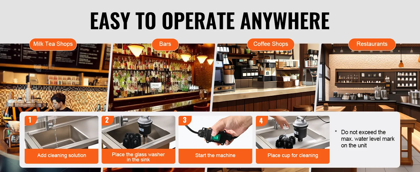 The electric glass washer allows for easy operation anytime and anywhere. Whether in a busy bubble tea shop, a vibrant bar, a cozy cafe, or various dining establishments, it’s the perfect tool to enhance your efficiency.