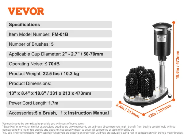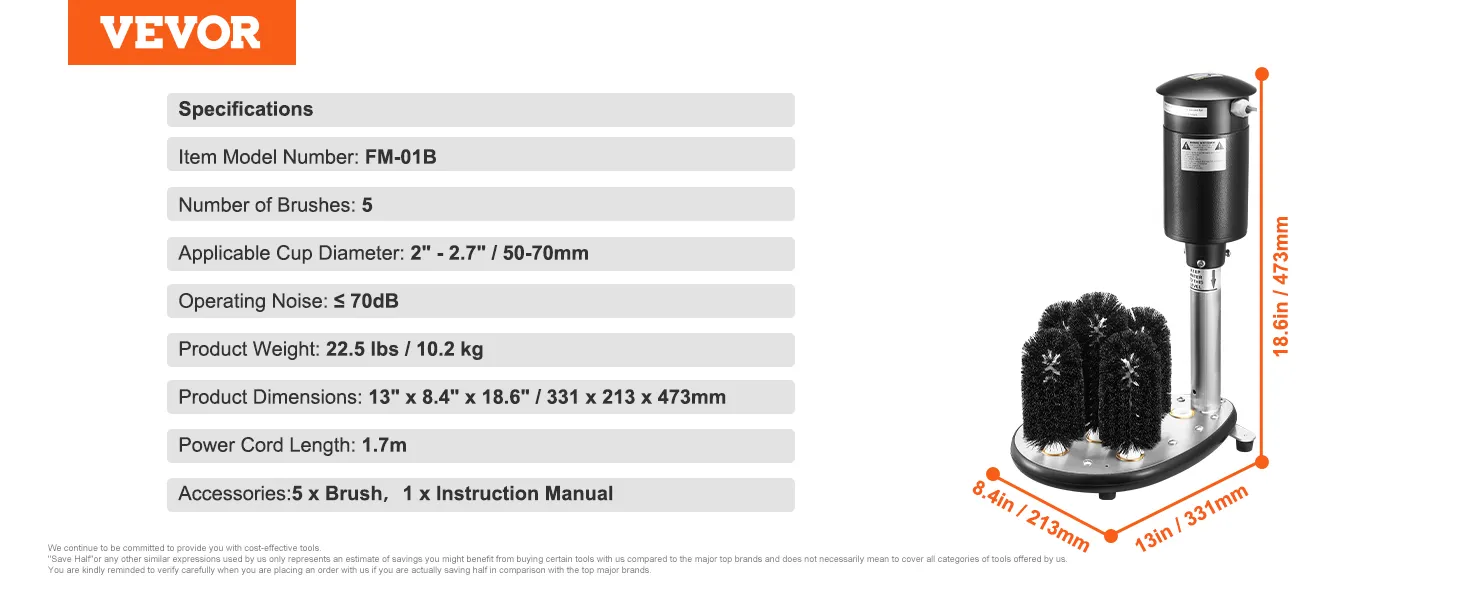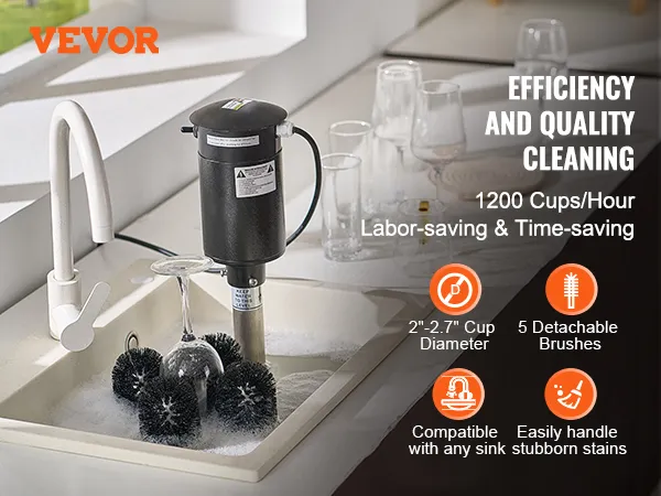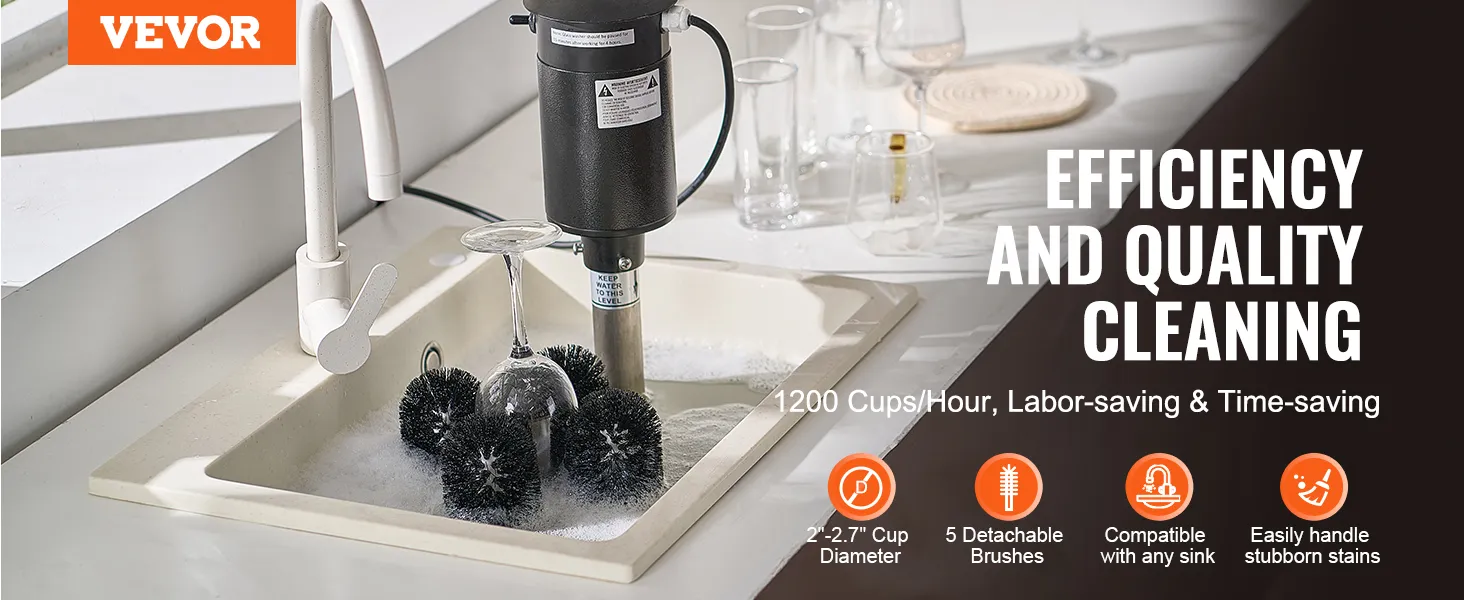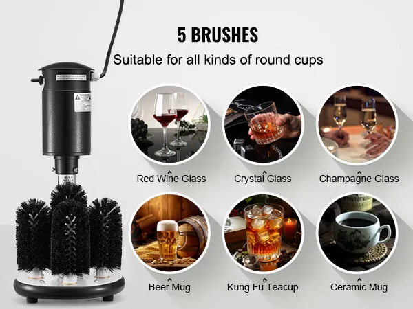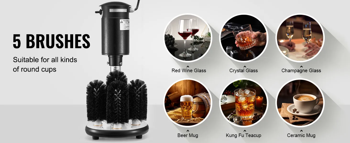 This washer features 5 brushes, allowing it to adapt flexibly to various round-mouth glass types. It is widely suitable for champagne glass, beer glass, glass, and mags. Perfect for both family gatherings and commercial settings, it meets all your cleaning needs.