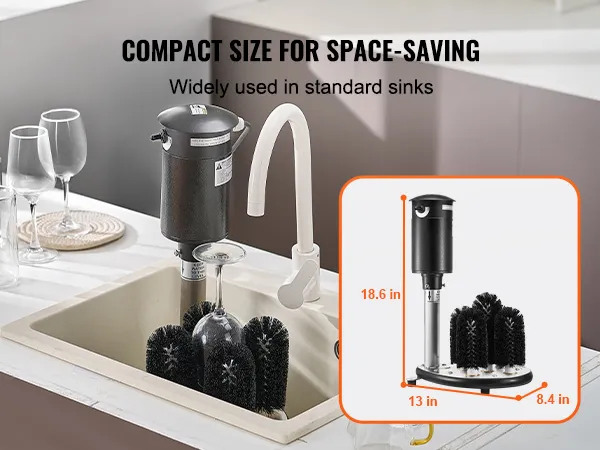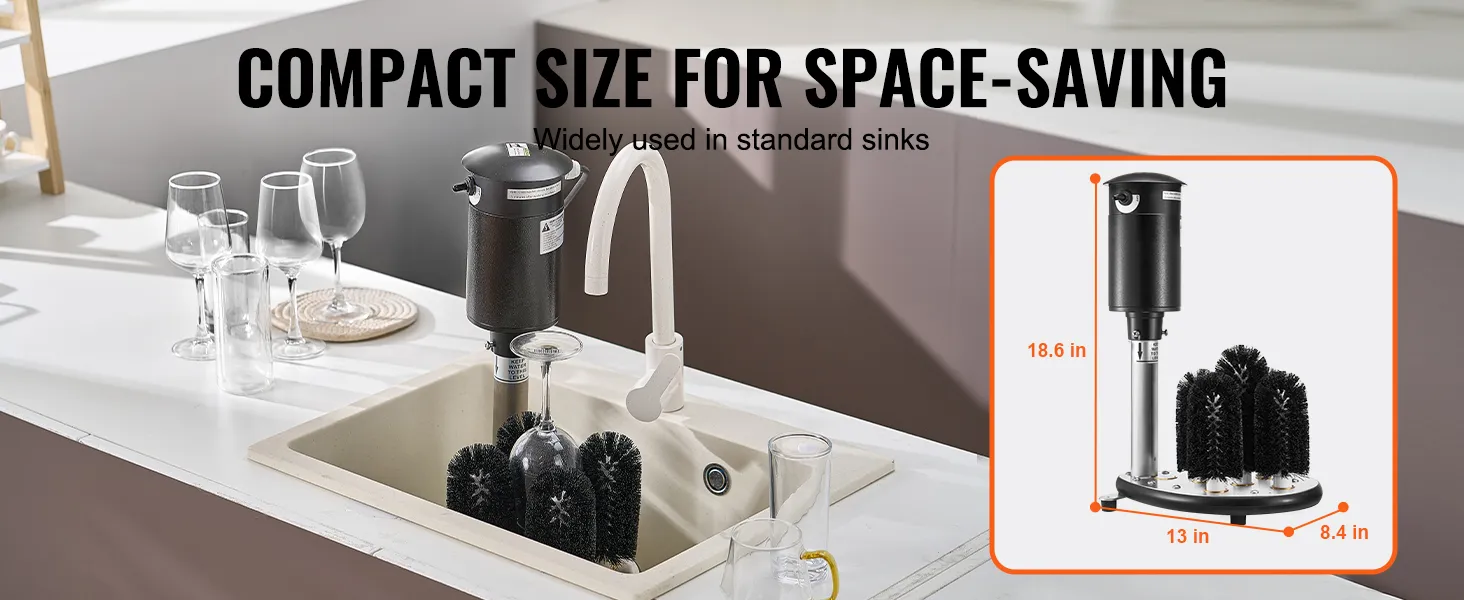 Compatible with Various Glass Types: With its flexible design, this glass washer accommodates a wide range of glass types, including wine glasses, crystal glasses, champagne flutes, beer mugs, tea cups, and ceramic mugs, as long as the glass opening is between 2"-2.7". Its adaptable design ensures compatibility with your diverse cleaning needs.