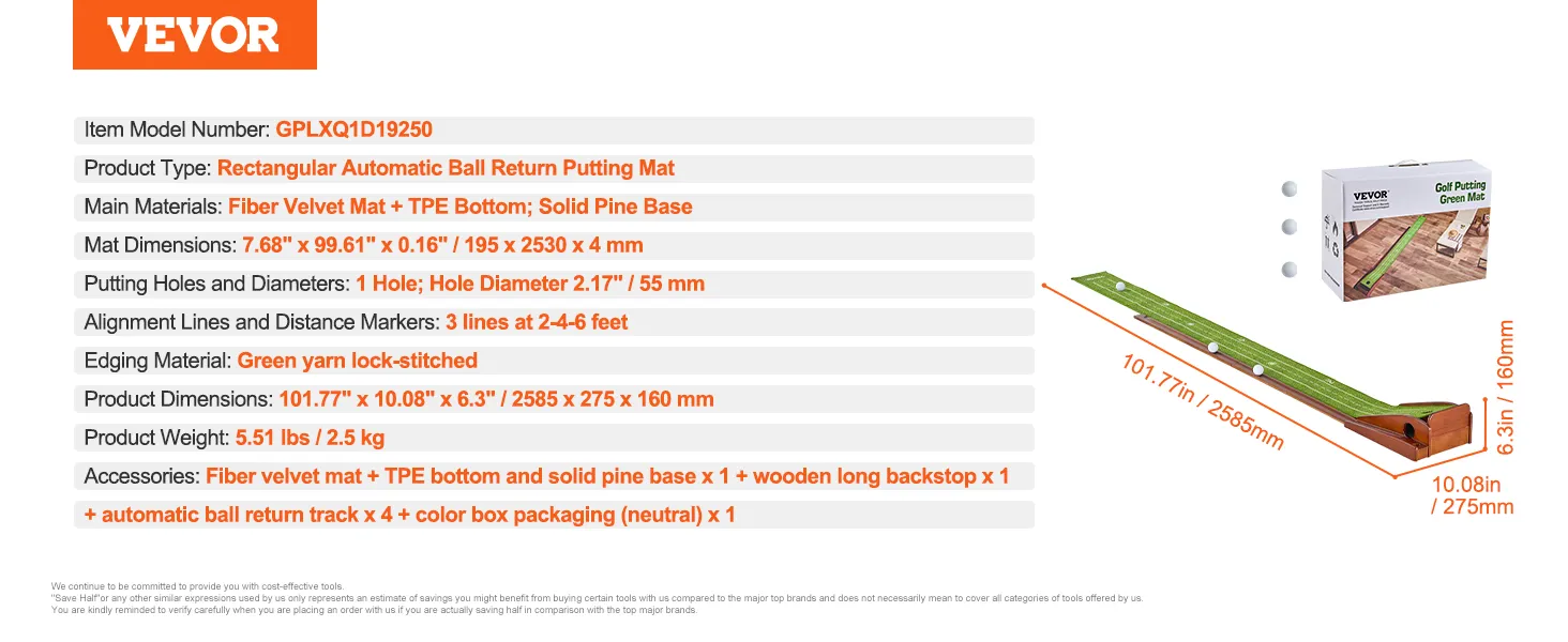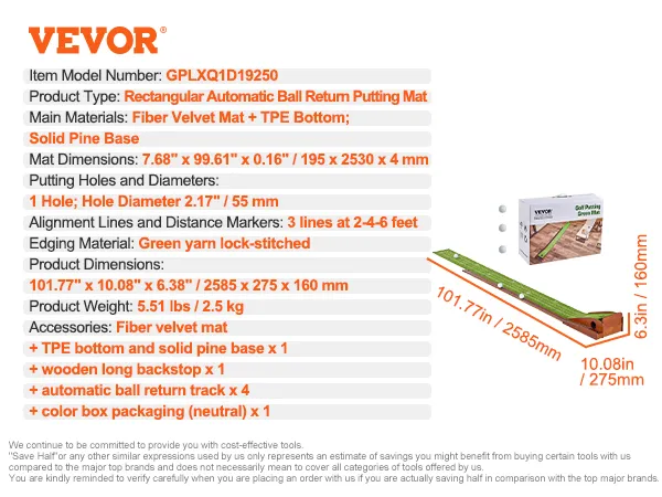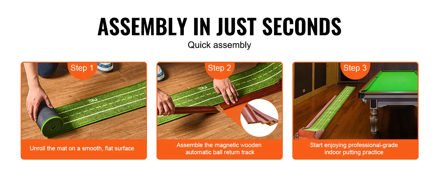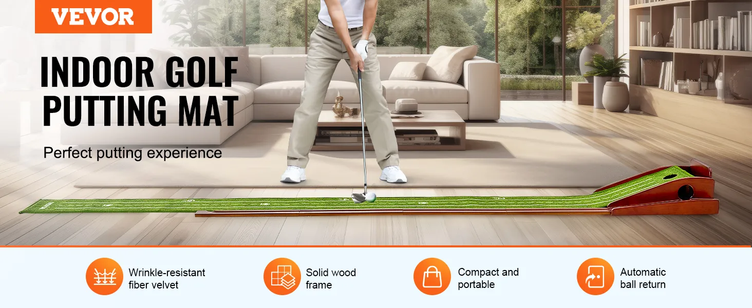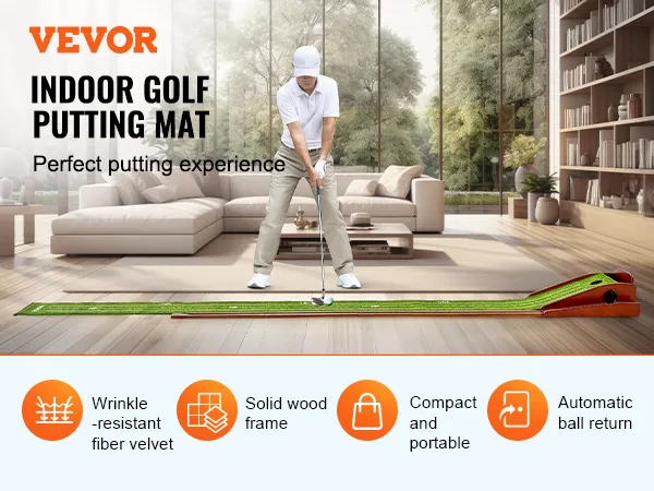 Het massief houten frame en het automatische balretoursysteem zorgen voor een soepele en continue putervaring. De lichtgewicht en draagbare puttingmat zorgt voor fantastische golfoefeningen in elke binnenruimte.
