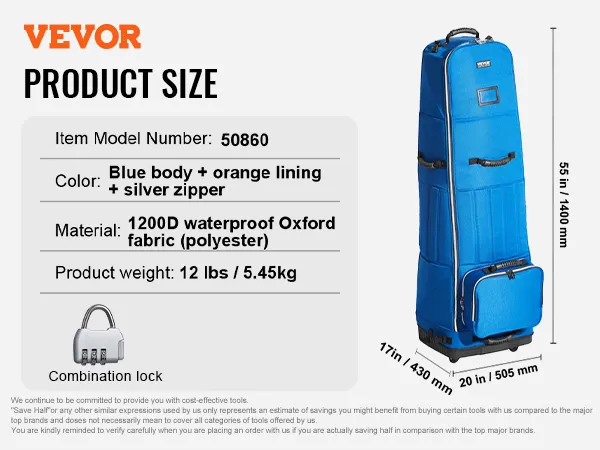 Humanized Design: The product features a U-shaped wide opening for easy access. Equipped with internal straps to reduce club movement, it effectively protects your golf clubs from wear and tear. An additional combination lock prevents the zipper from slipping and adds security to your golf equipment.