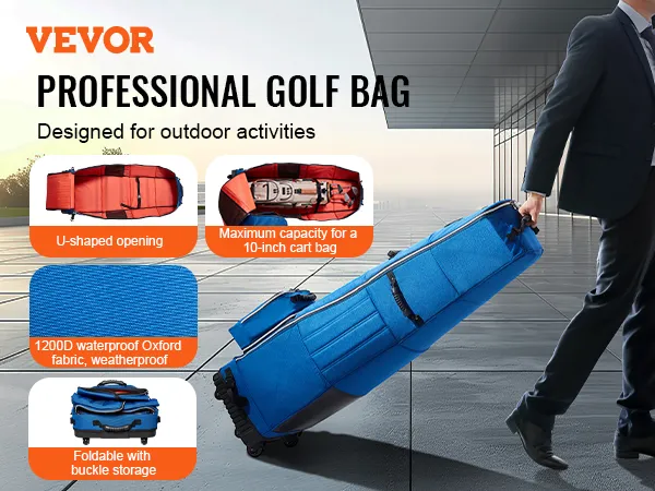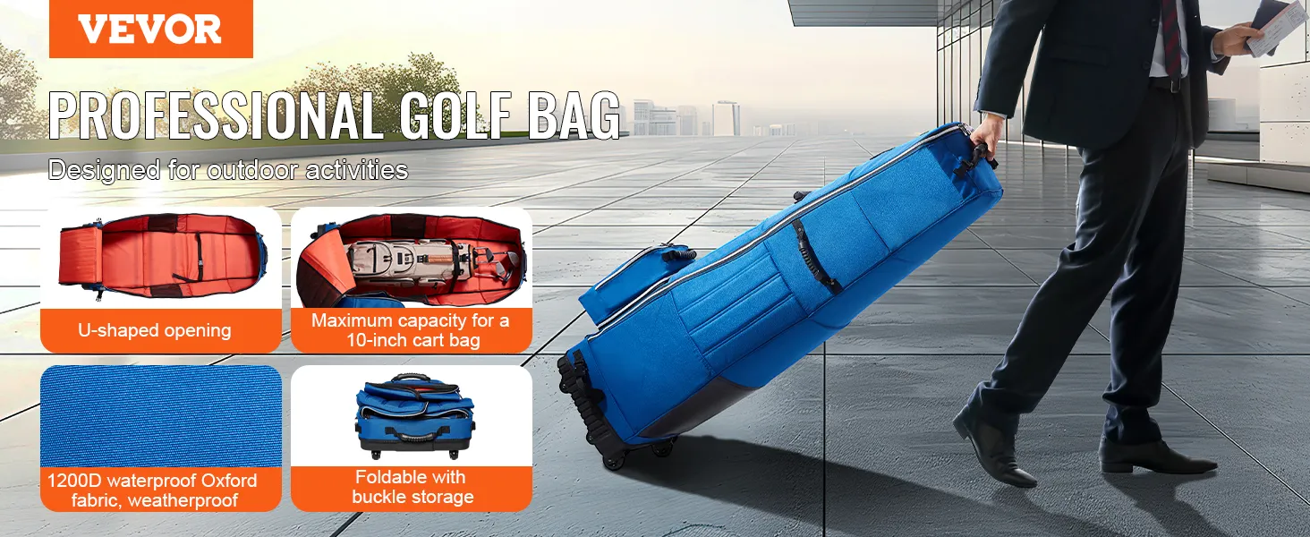 The foldable golf club travel bags is designed to carry more clubs and equipment, which makes it heavier. It comes with wheels and a handle for easy mobility, featuring optimized wheels and a premium rubber base to ensure a long-lasting and smooth carrying experience.