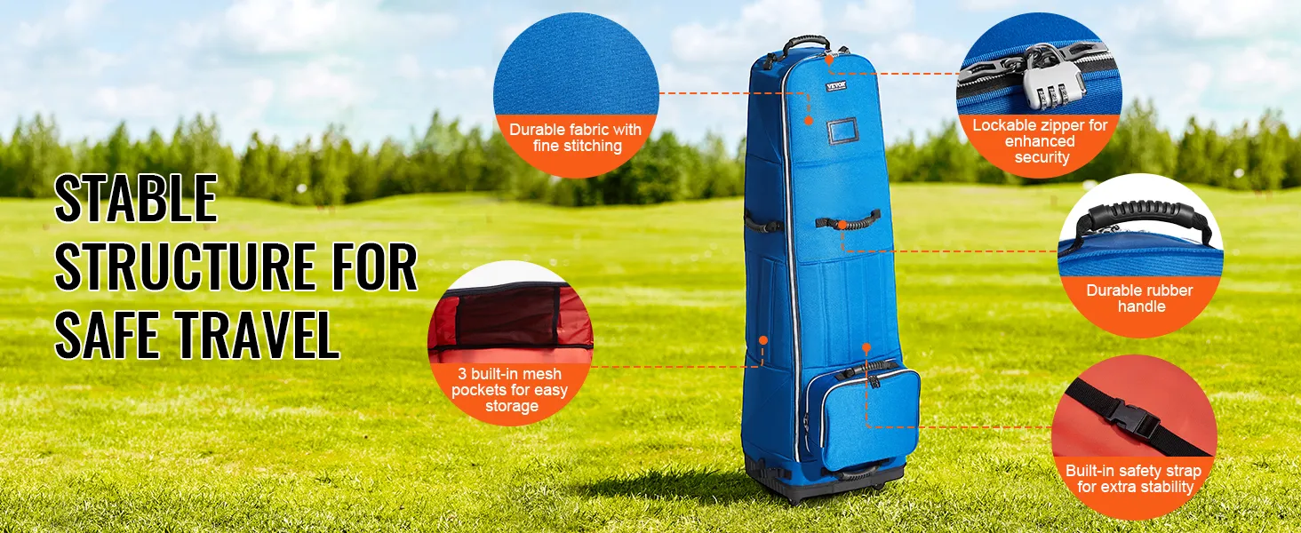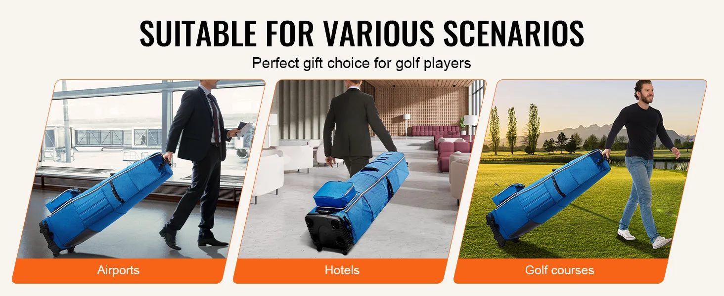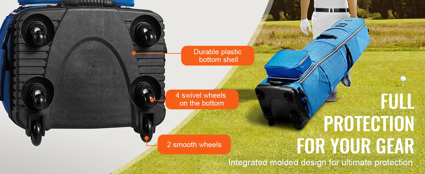 Safe and Stable: Designed to carry more clubs and equipment, the golf luggage case cover is heavier. It comes with wheels and a handle for easy mobility. Featuring optimized wheels, an integrated molded, and 3D bottom protection for ultimate all-around protection. It reduces wear by 95%, ensuring a long-lasting and smooth carrying experience.