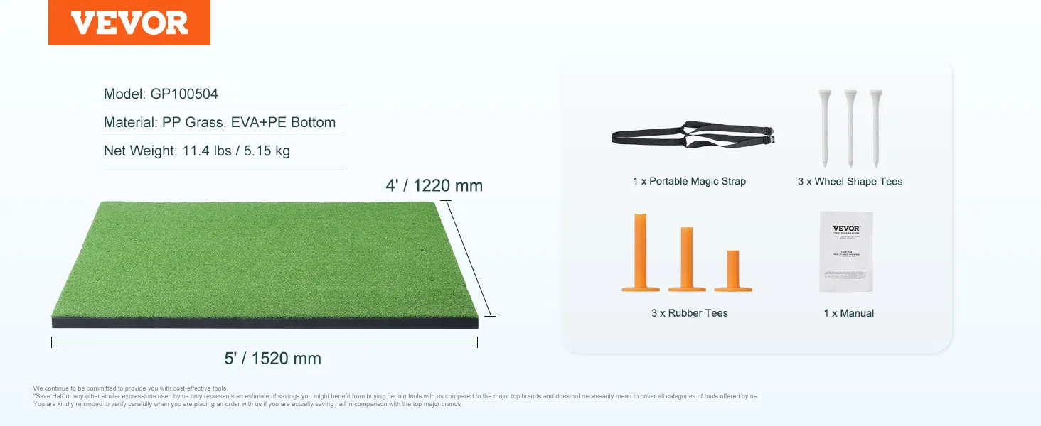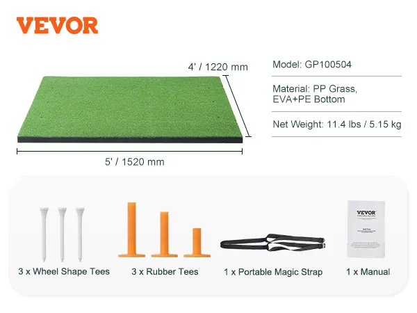 VEVOR Golf Hitting Mat, Golf Turf Oefenmatten 152 x 122 cm, Verdikte Golf Hitting Training Aids met 6 Golf Tees, 10 mm Dikte, Backyard Golf Oefenmat, Binnen- en Buitentraining