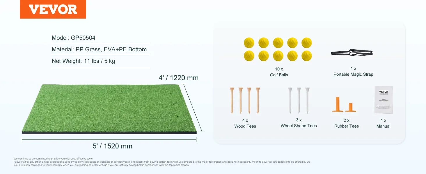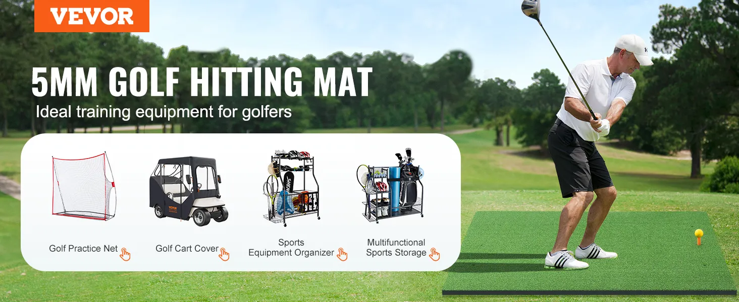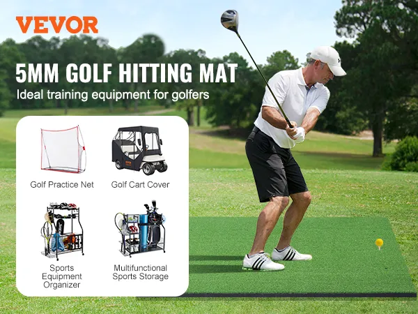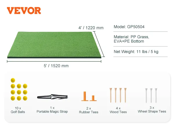 VEVOR Golf Hitting Mat, Golf Turf Oefenmatten 152 x 122 cm, Verdikte Golf Hitting Trainingshulpmiddelen met 4 Houten Tees, 10 Golfballen, Golf Oefenmat in de Achtertuin, Buiten en Binnen