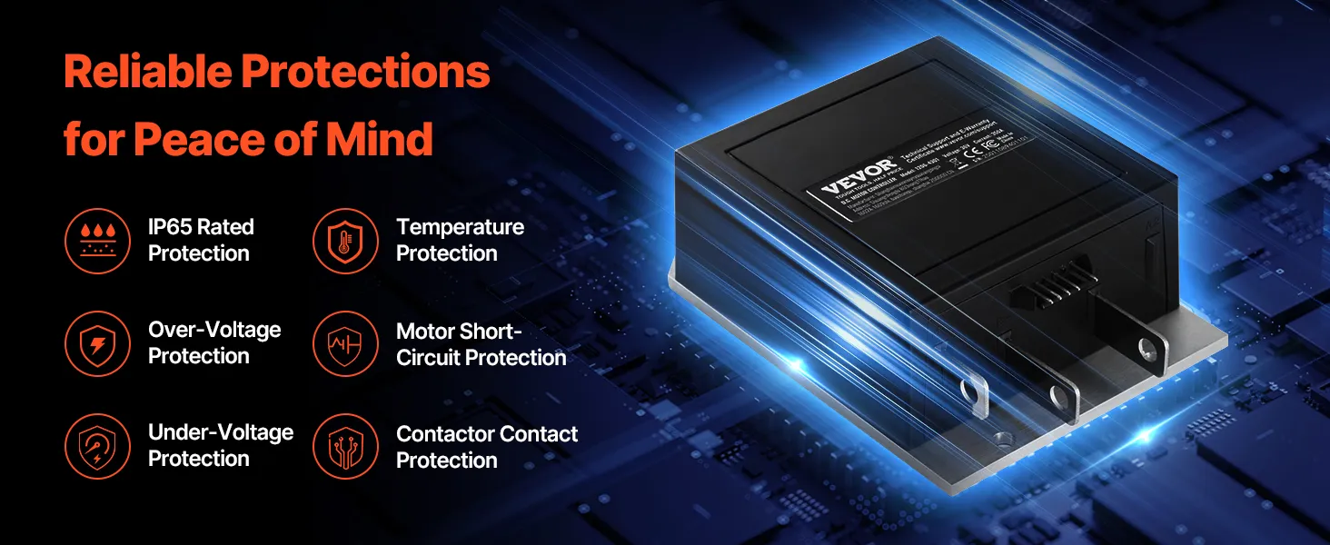 The golf cart controller has multiple security features to maintain stable operation, even in harsh weather. It's designed to safeguard your golf cart during every ride for reliability.