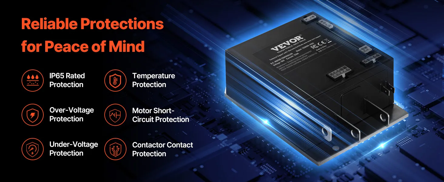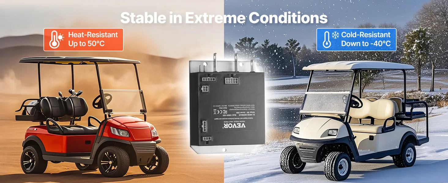 The golf cart controller has multiple security features to maintain stable operation, even in harsh weather. It's designed to safeguard your golf cart during every ride for reliability.