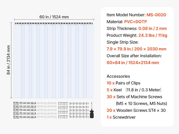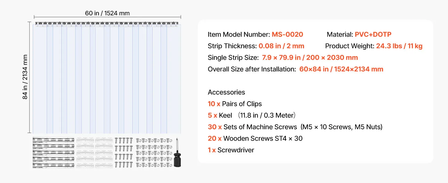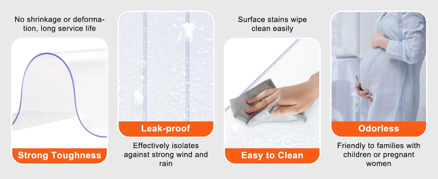 Duurzaam PVC-materiaal: verwelkom ons PVC-strookgordijn. Het is zacht, elastisch en ontworpen om lang mee te gaan. Het heeft geen onaangename geur en is gemakkelijk schoon te maken - uw normale afwasmiddel is voldoende. Bovendien meet het, eenmaal geïnstalleerd, 152,4 x 213,4 cm (60 x 84 inch) en is het stevig 2 mm dik.