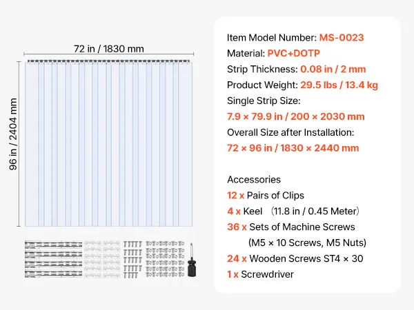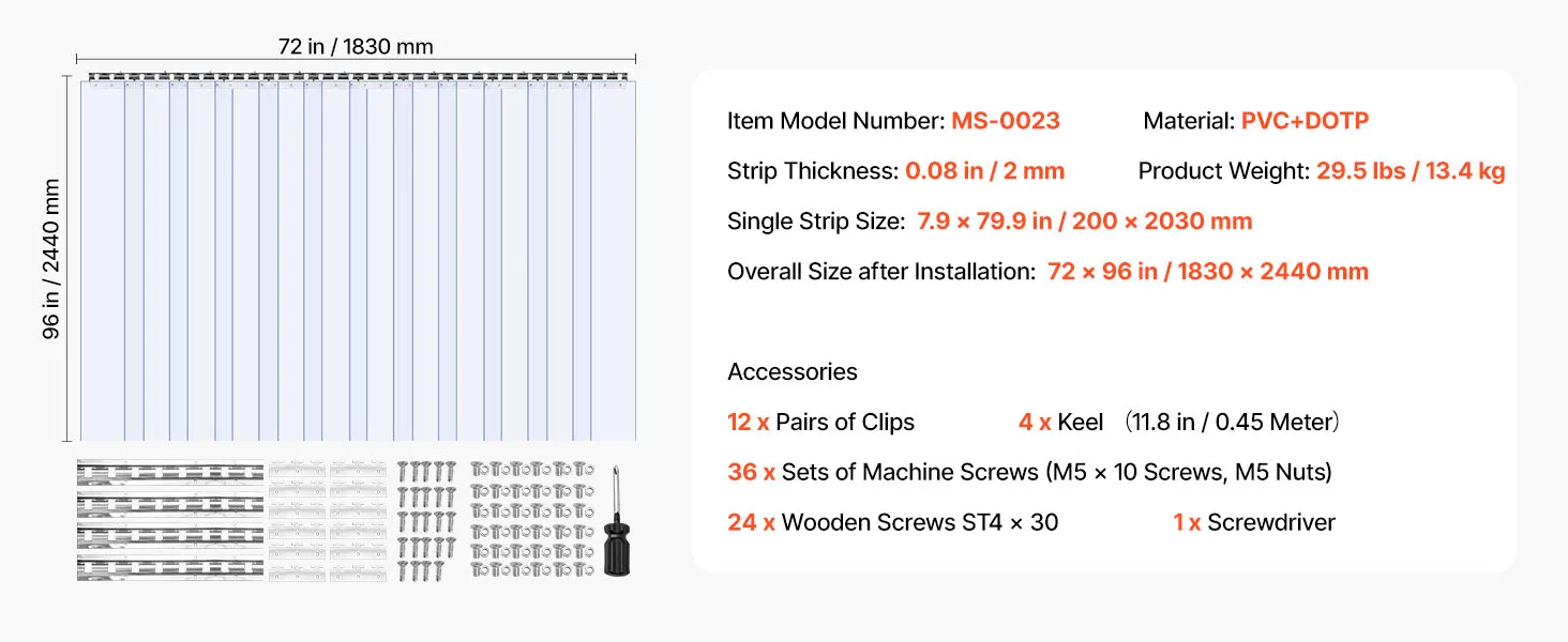 Excellent Fit: Measuring approximately 96 in long and 72 in wide, this plastic door strip offers full, effective coverage for your doorway. With a sturdy 0.08 in thickness, it's designed for frequent use without losing its shape or strength