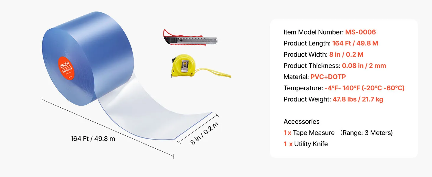 Your Curtain, Your Way: Choose clear or ribbed freezer curtain strips to trim according to your actual need. We include a utility knife and tape measure so you can cut it to fit after precise measurement