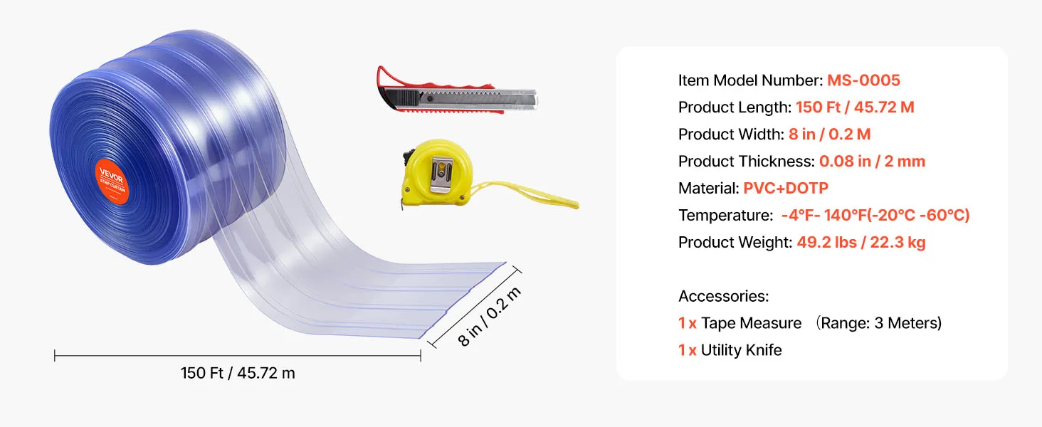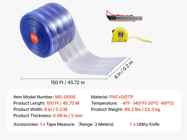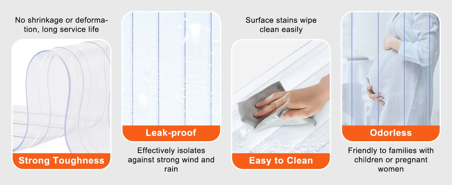 Excellent Fit: Measuring approximately 150 ft long and 8 in wide, this plastic door strip offers full, effective coverage for your doorway. With a sturdy 0.08 in thickness, it's designed for frequent use without losing its shape or strength