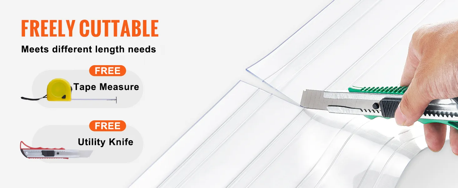Your Curtain, Your Way: Choose clear or ribbed freezer curtain strips to trim according to your actual need. We include a utility knife and tape measure so you can cut it to fit after precise measurement