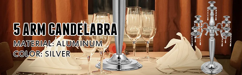 Dit middenstuk van de kandelaar is gemaakt van zilverkleurig aluminium met een geavanceerde oppervlaktebehandeling. Het heeft anti-kras, anti-corrosie en anti-roest eigenschappen voor langdurig gebruik. Glanzend zilver trekt de ogen van mensen.