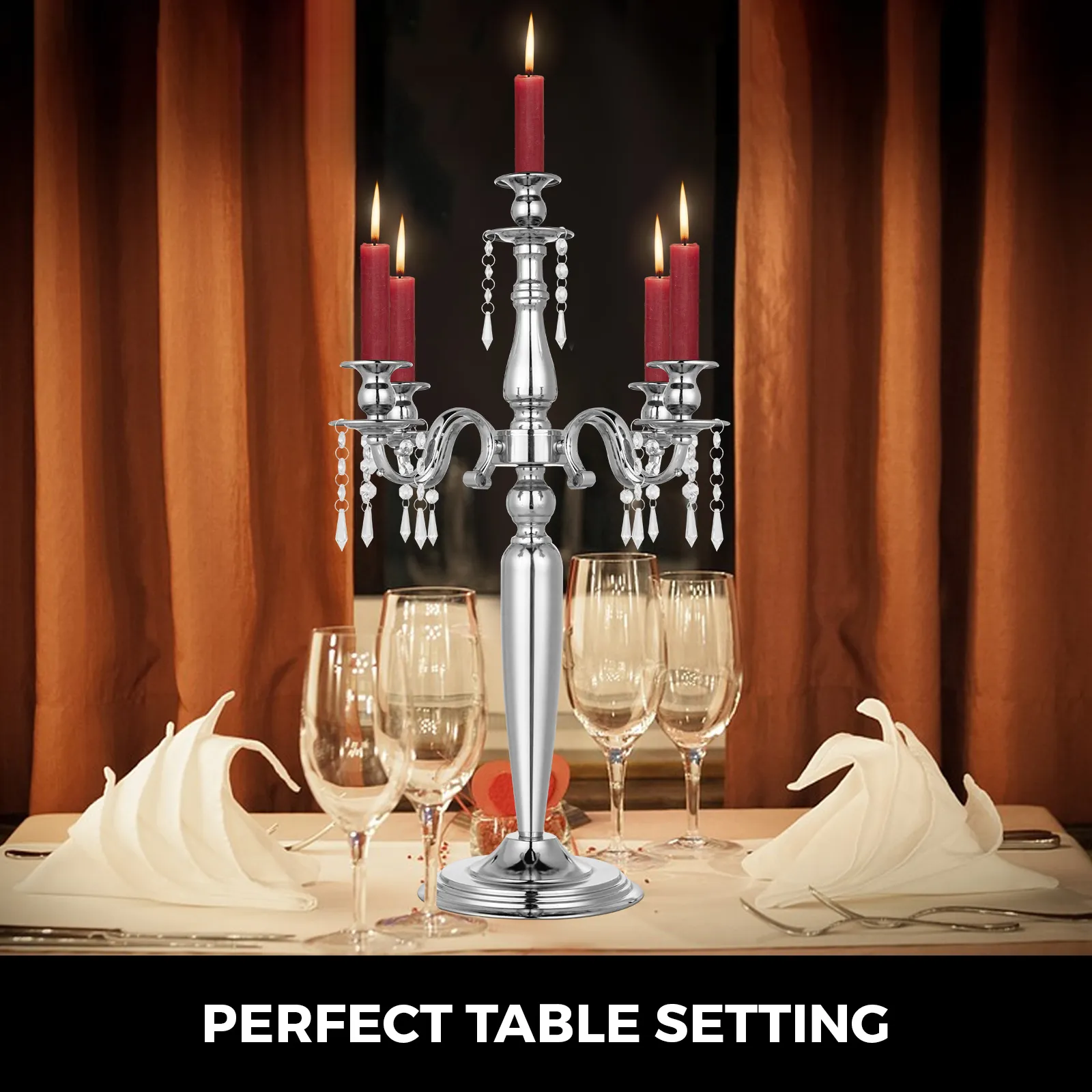 【AMAZING SILVER & ELEGANCE】- Deze kandelaar met 5 kaarsen heeft een prachtige zilveren kleur en een oogverblindend ontwerp, waardoor een kunstwerk voor de tafelatmosfeer wordt gecreëerd en de couvert en het feest er prachtig uitzien. Traandruppels van acryl en gebogen armen zorgen voor een chique en elegante uitstraling.