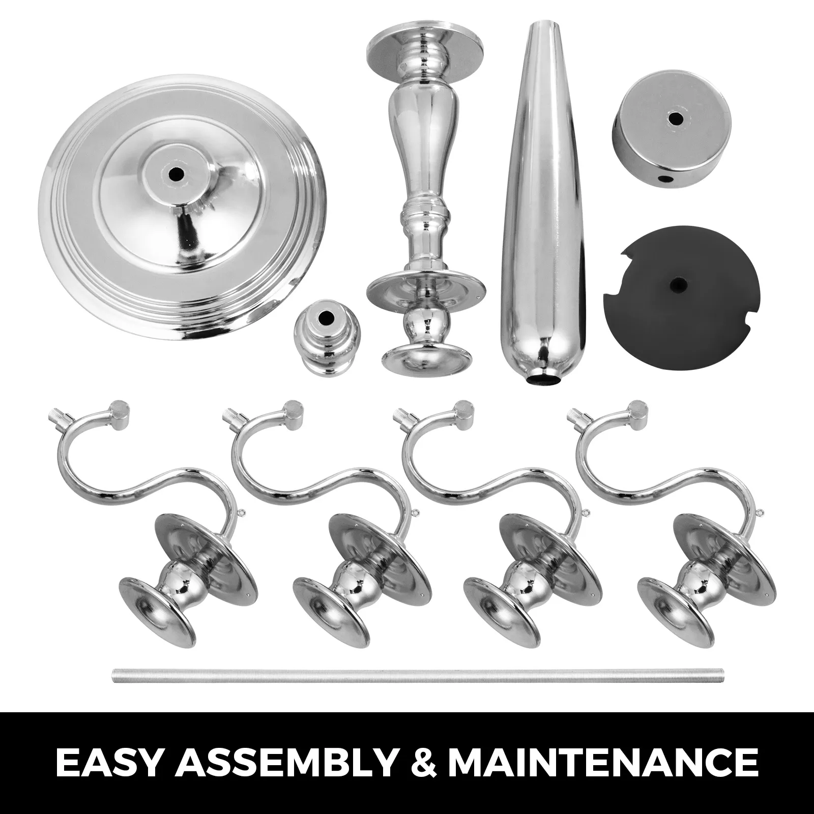 Dit middelpunt van de zilveren bruiloftkandelaar wordt in stukken geleverd, dus montage is vereist. Het kost minder tijd om het te installeren en in elkaar te schroeven. Grondig reinigen gaat snel en eenvoudig met een doekje.