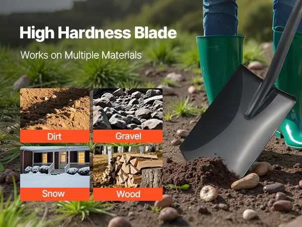 De tuinschep heeft een blad van een zeer harde legering, waardoor hij geschikt is voor diverse materialen. Of het nu losse grond, hard gesteente of bevroren sneeuw is, hij graaft gemakkelijk en breekt minder snel.