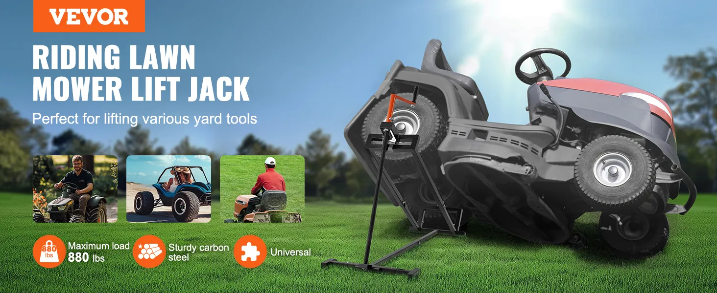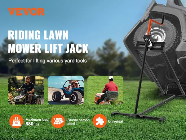 Voertuigcompatibiliteit: Deze krik voor zitgrasmaaiers is gemaakt van sterk en duurzaam koolstofstaal en heeft een draagvermogen tot 400 kg, waardoor hij geschikt is voor een groot aantal zitgrasmaaiers, ATV's en tuintractoren.
