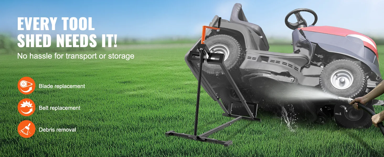 Met de gazontractorkrik voor onderhoud en reiniging kunt u uw gereedschap en voertuigen onderhouden zonder dat u personeel hoeft in te huren. Het is een onmisbaar hulpmiddel voor elk tuinhuis.