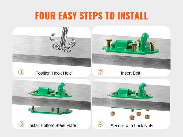 De opschroefbare bevestigingshaak is eenvoudig te monteren en vereist slechts vier stappen in een paar minuten, zonder boren of extern gereedschap. Zelfs beginners kunnen de montage eenvoudig en efficiënt uitvoeren.