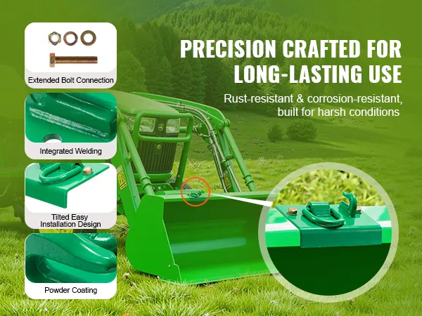 Versatile Applications: The bolt on grab hook is widely applicable in heavy-duty operations across agriculture, industry, and construction. It is idea for lifting and moving heavy objects on farms and outdoor yards, as well as for transporting building materials at construction sites. This versatility makes it an excellent attachment for tractor buckets, enhancing productivity in various tasks.