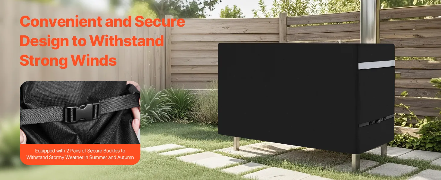 Thoughtful, User-Friendly Design: The bbq gas grill cover for outdoor grill comes with reflective handles for easy use during both day and night, and reinforced seams to prevent fraying. It is equipped with 2 pairs of buckles to securely tighten the cover, effectively preventing it from being blown away or shifted during strong winds