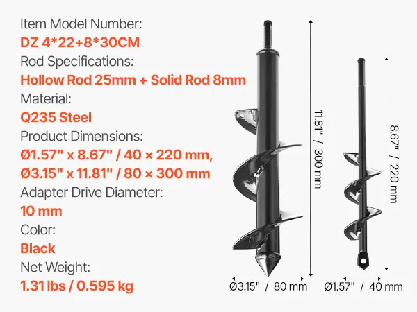 Veelzijdige afmetingen: Met afmetingen van Ø1,57 × 8,67 inch/40 × 220 mm en Ø3,15 × 11,81 inch/80 × 300 mm zijn de boorgaten ideaal voor het planten van bloembollen en bloemen van verschillende groottes om aan uw uiteenlopende tuinierbehoeften te voldoen.